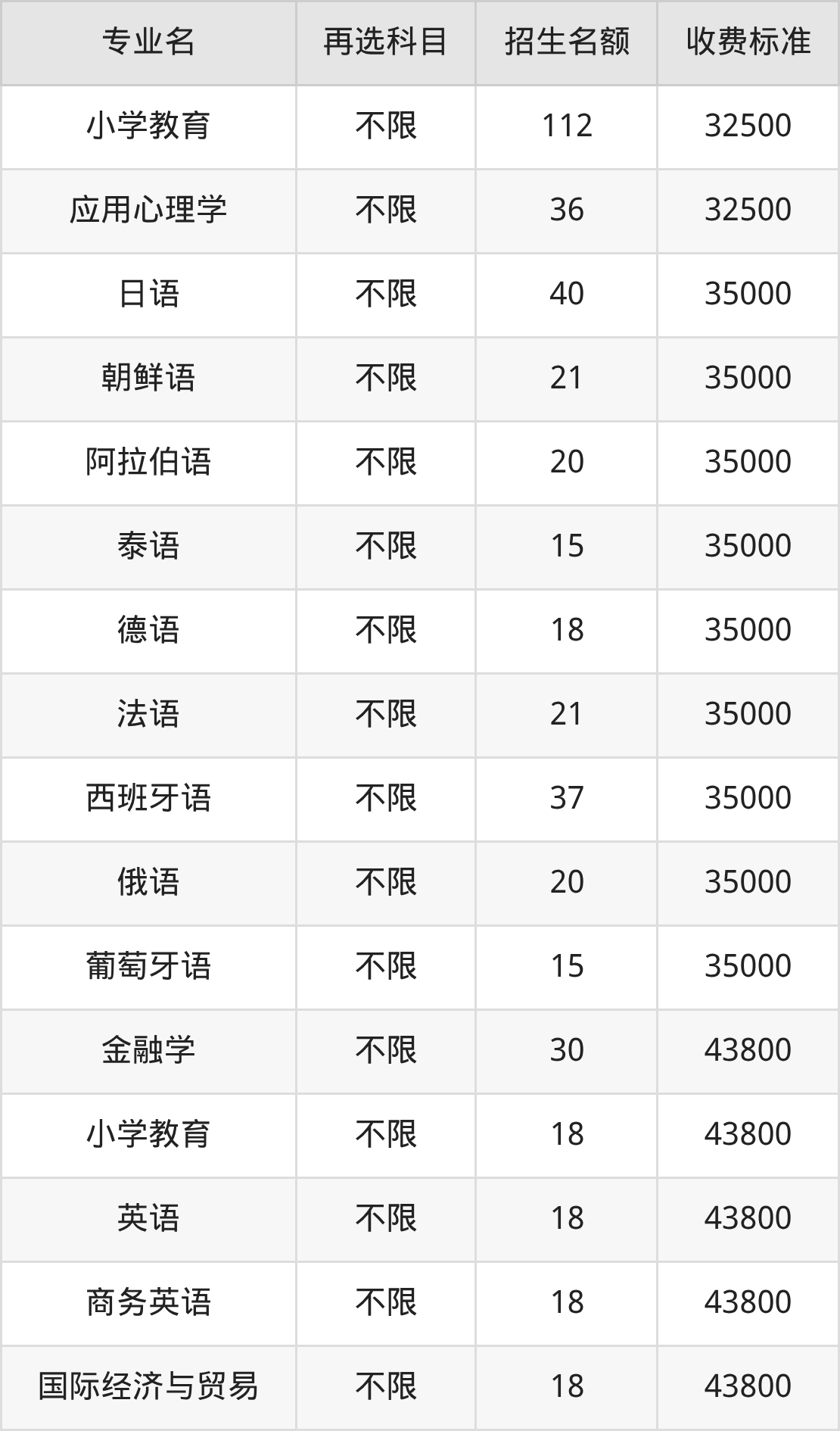 40.国际经济与贸易:学费是43800元