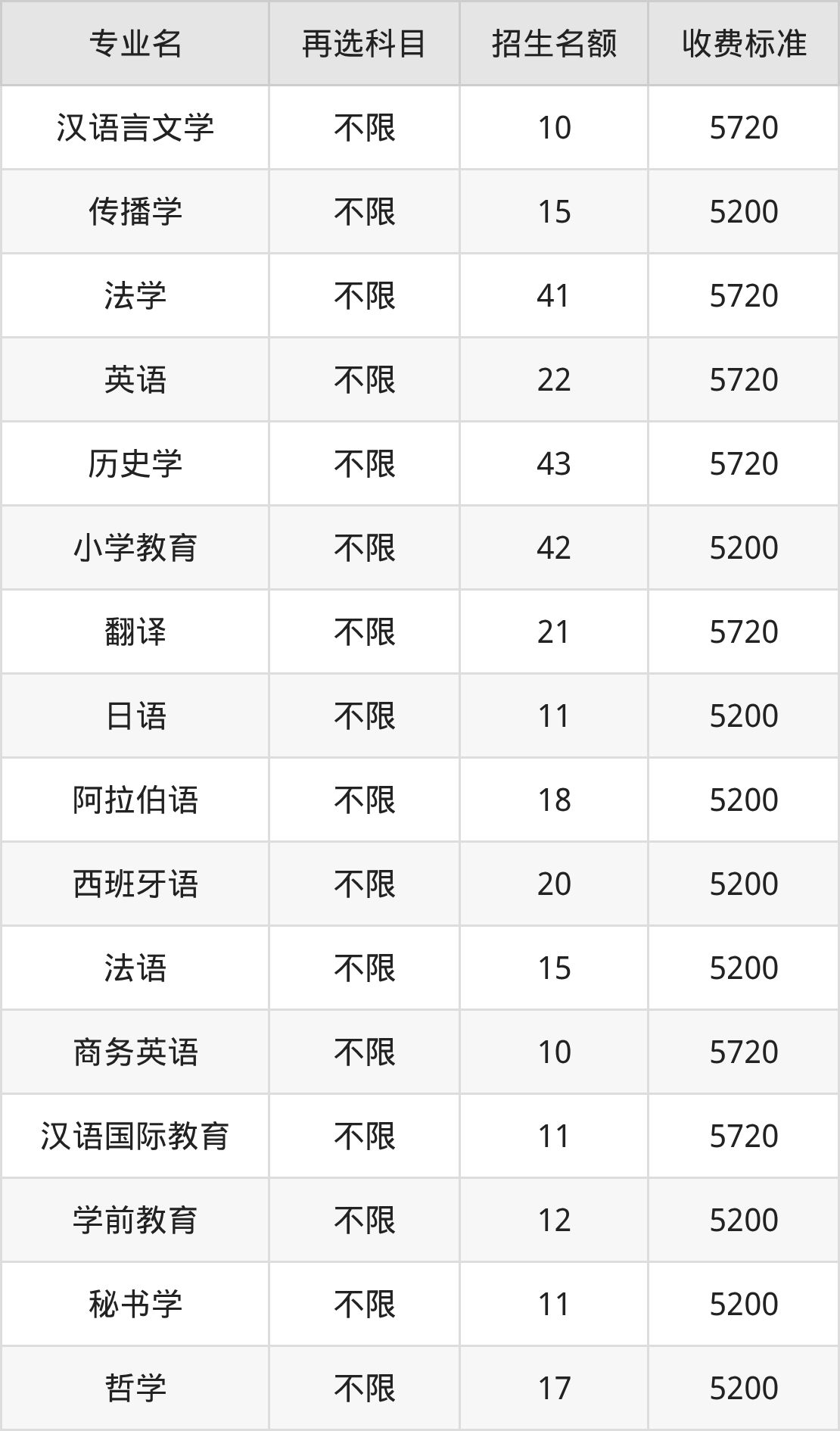 | 批次 | 首选 科目 | 专业名 | 招生 名额 |
