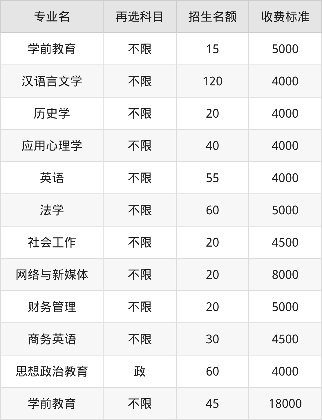 湖南人文科技学院在历史组本科批招生的各个专业,每年的学费是4000元-18000元。招生人数最多的专业是汉语言文学,2025年招120人,学费是4000元。