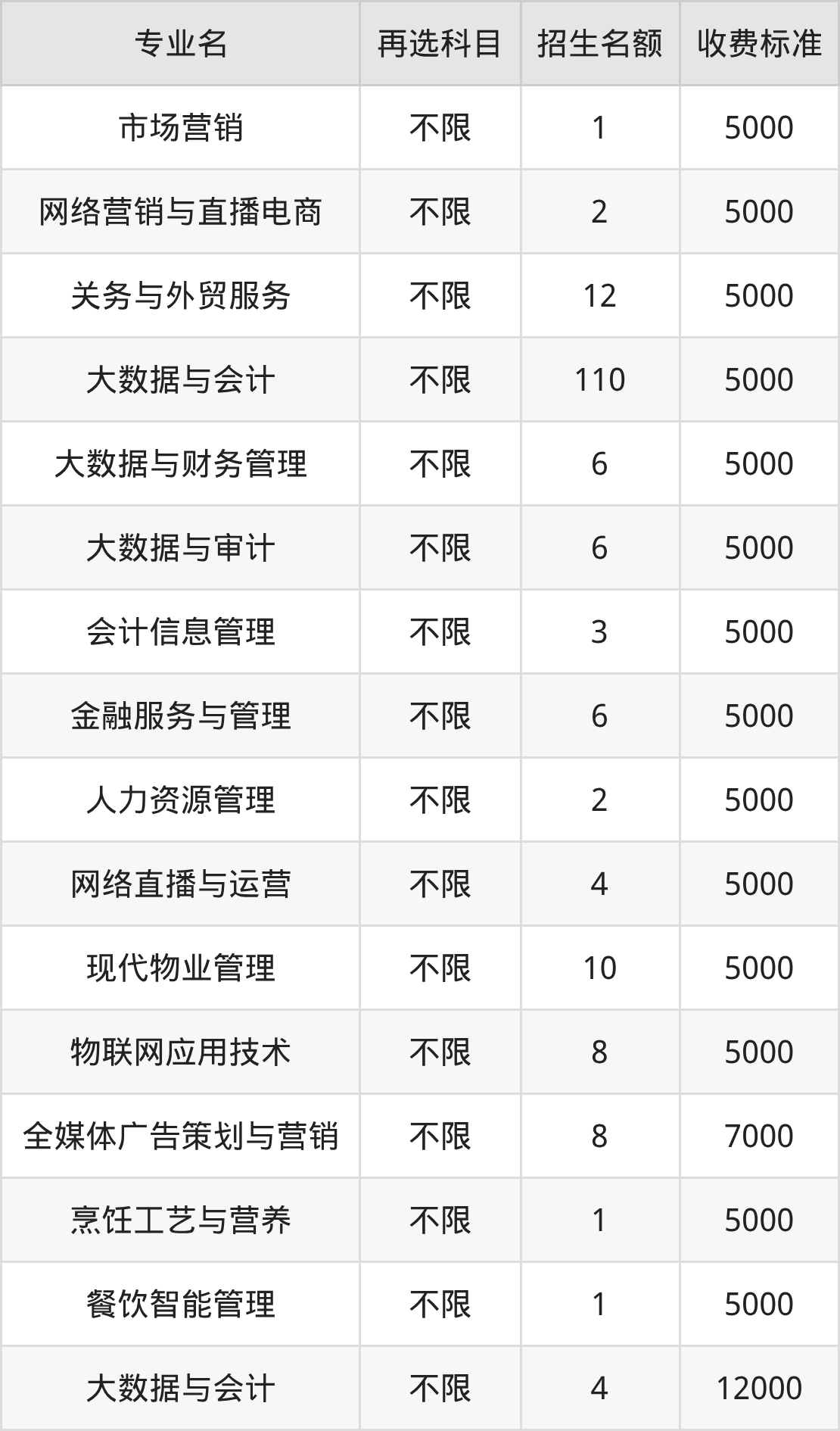 | 高职专科批 | 历史 | 大数据与财务管理 | 6 |