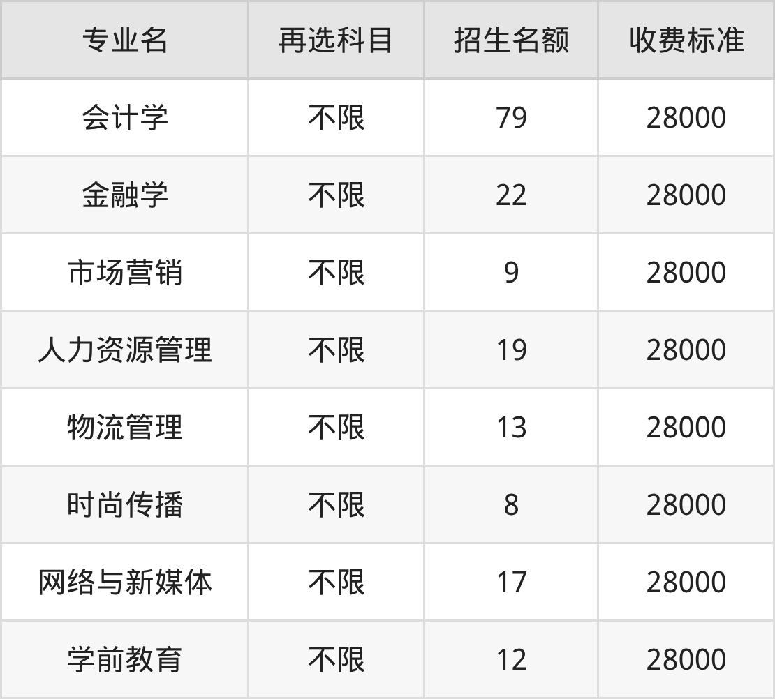 12.物流管理:学费是28000元