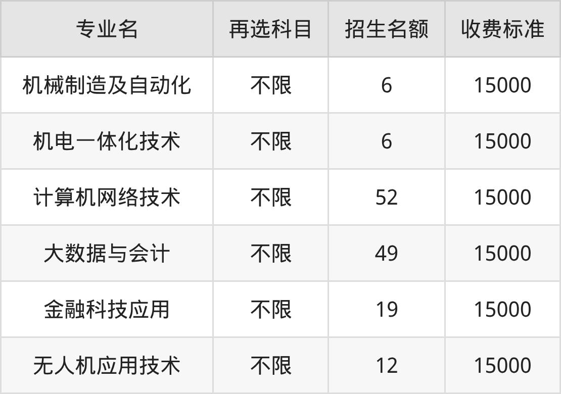| 高职专科批 | 历史 | 无人机应用技术 | 12 |