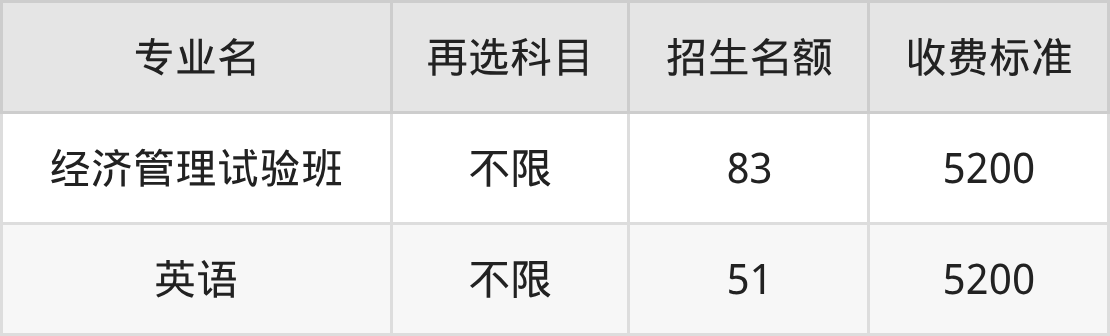 | 本科批 | 历史 | 经济管理试验班 | 83 |