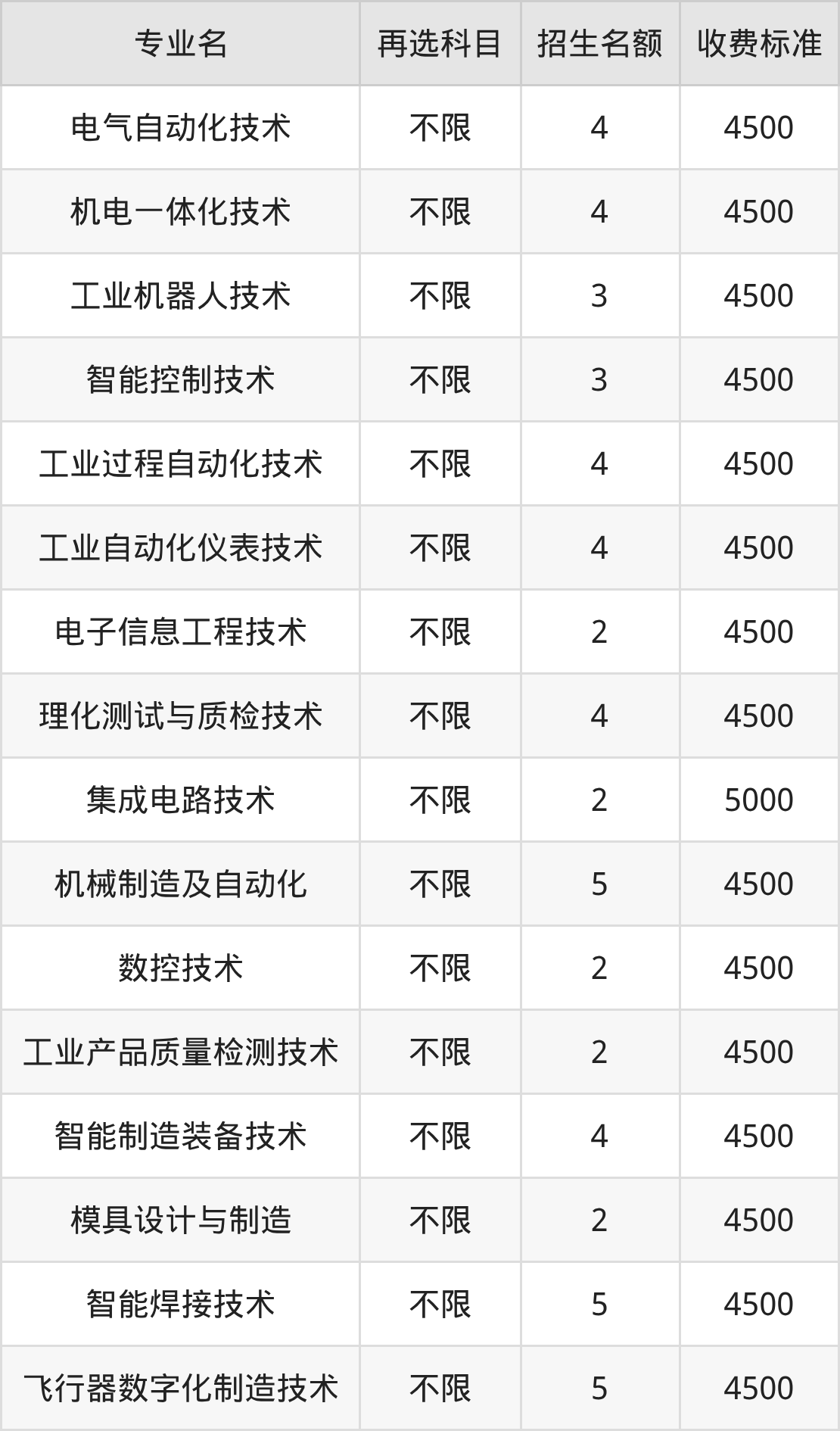 | 高职专科批 | 物理 | 智能控制技术 | 17 |
