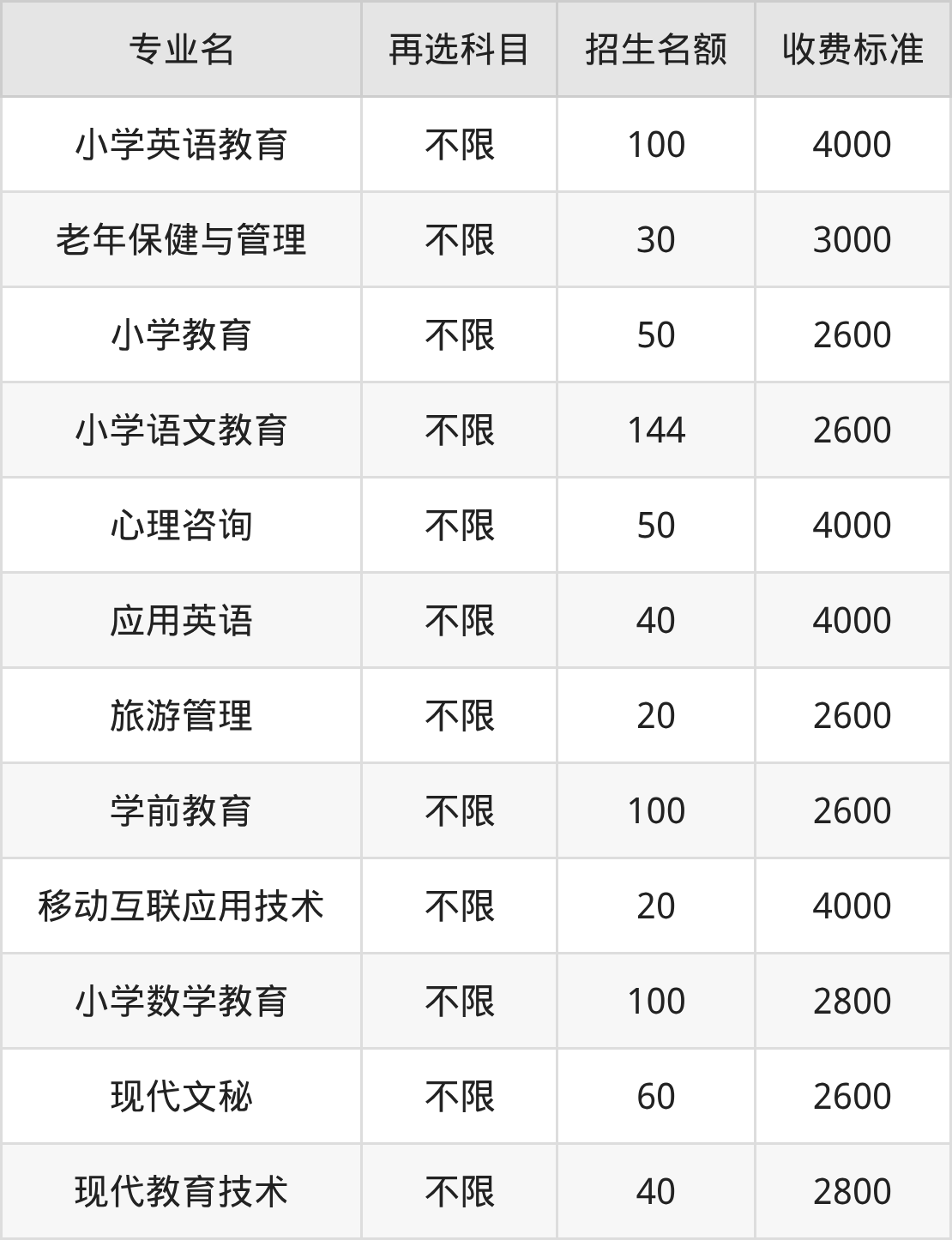 | 专科高职批 | 历史 | 心理咨询 | 50 |