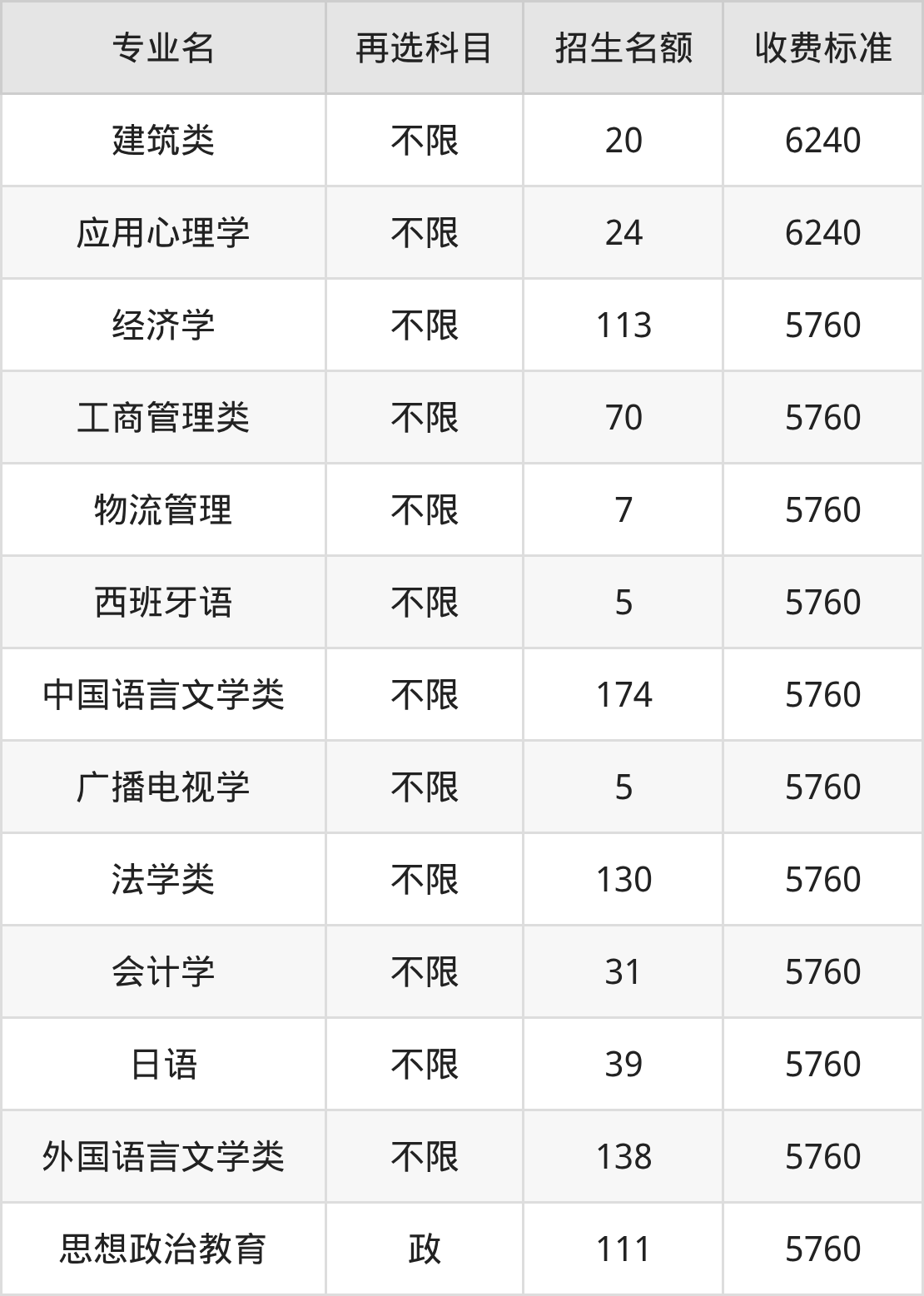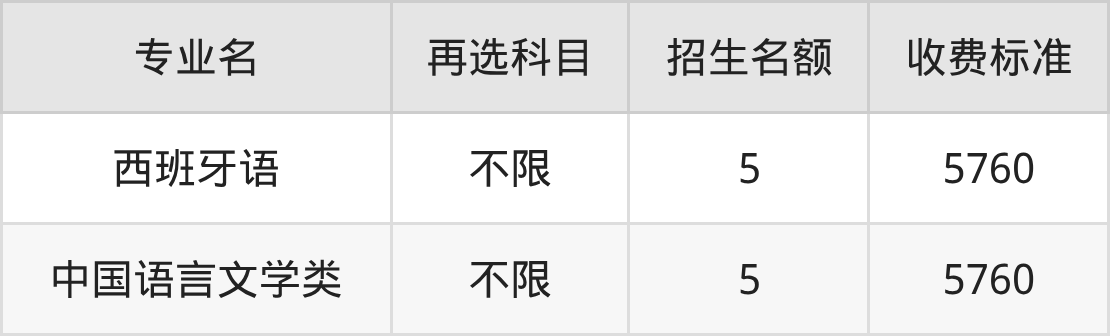 | 本科批B段 | 历史 | 西班牙语 | 5 |