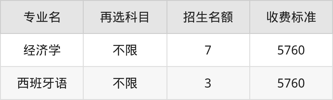| 本科批A段(地方专项) | 历史 | 经济学 | 7 |