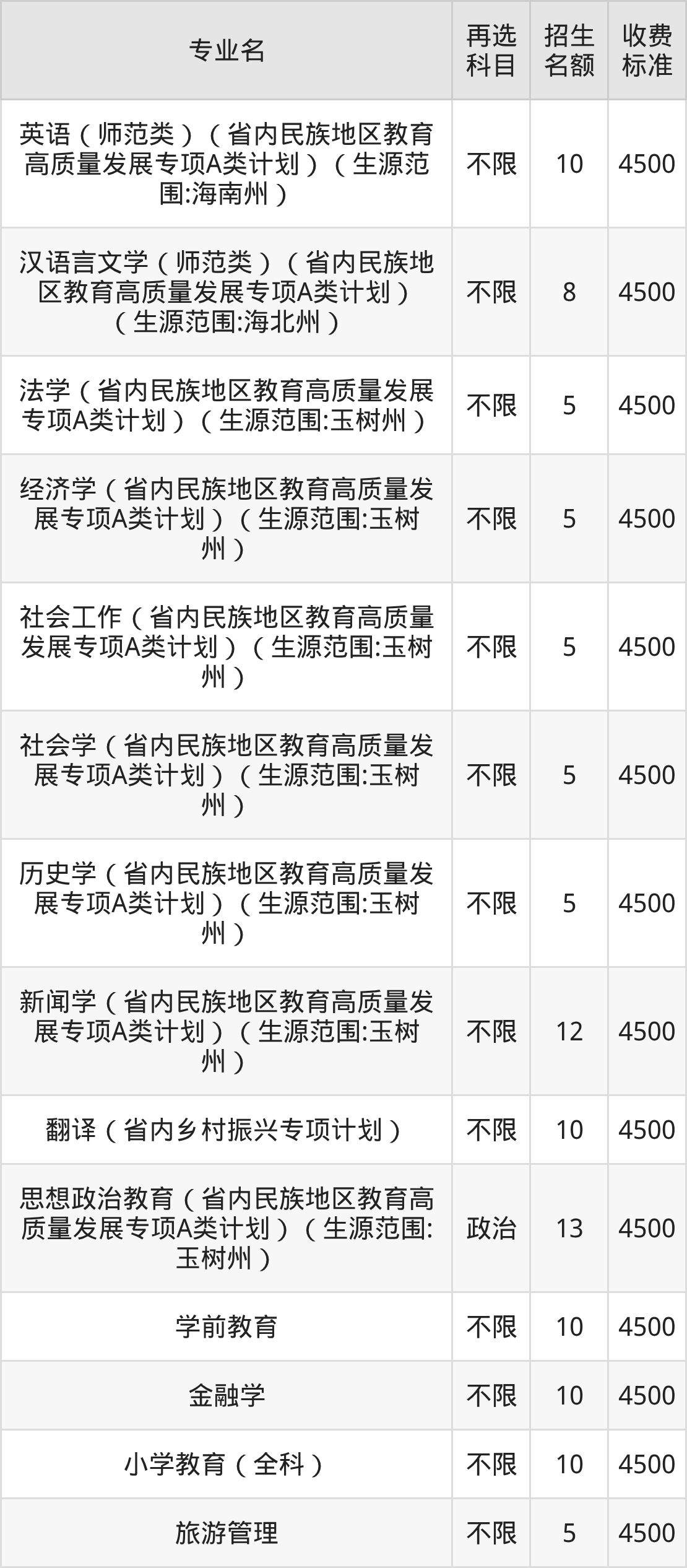 4.生物技术(省内民族地区教育高质量发展专项A类计划)(生源范围:玉树州):学费是5000元