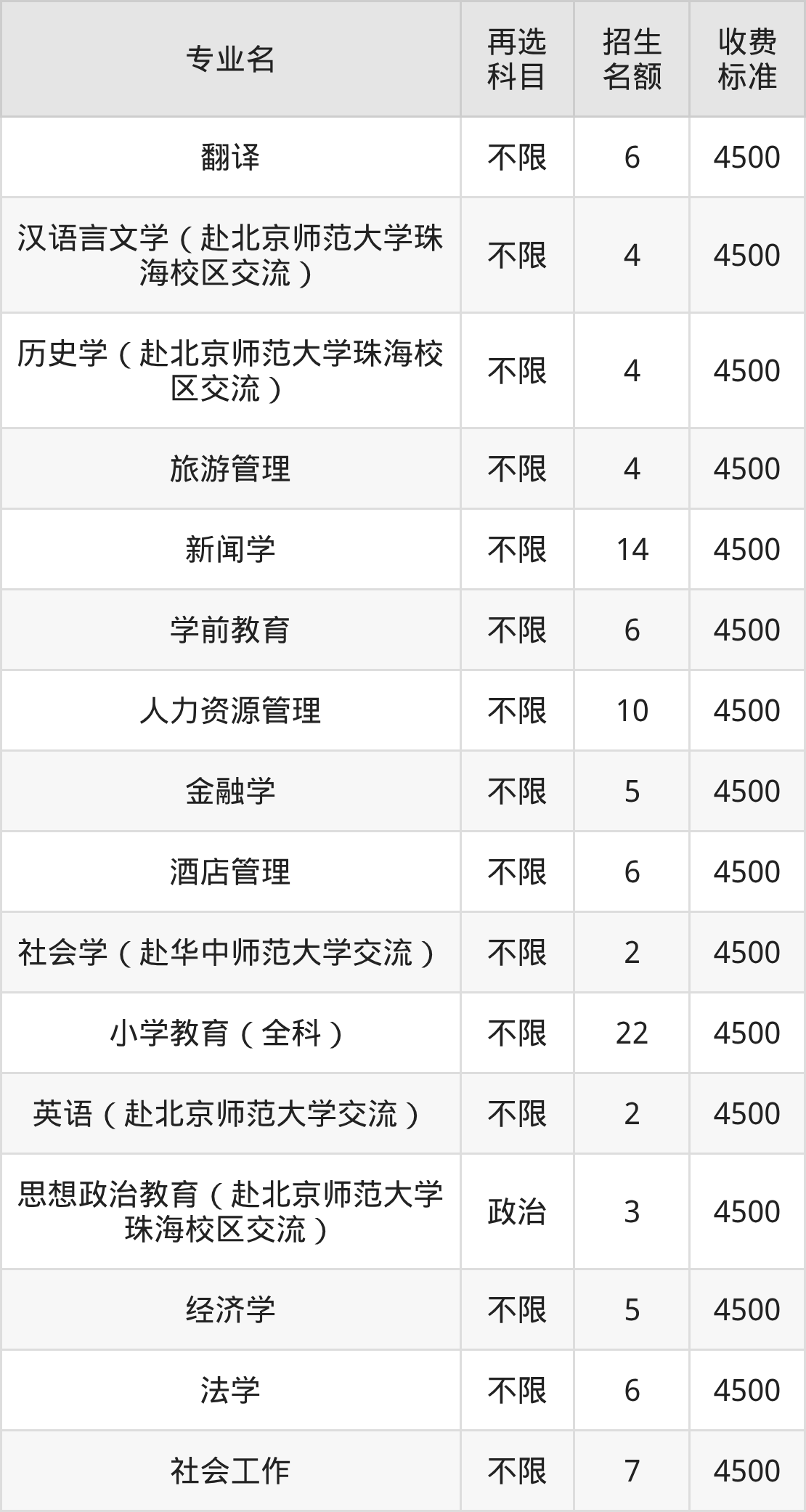 3.英语(赴北京师范大学珠海校区交流):学费是4500元