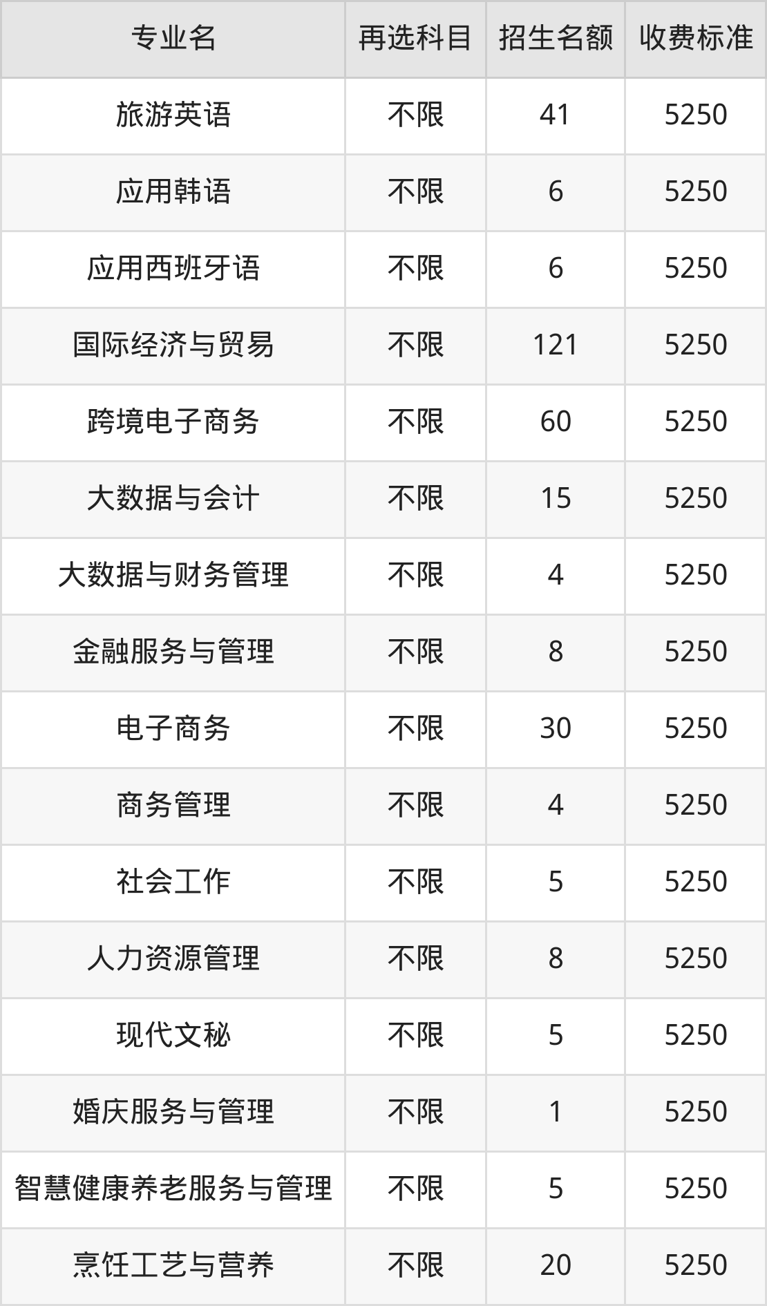 | 专科高职批 | 历史 | 旅游英语 | 41 |