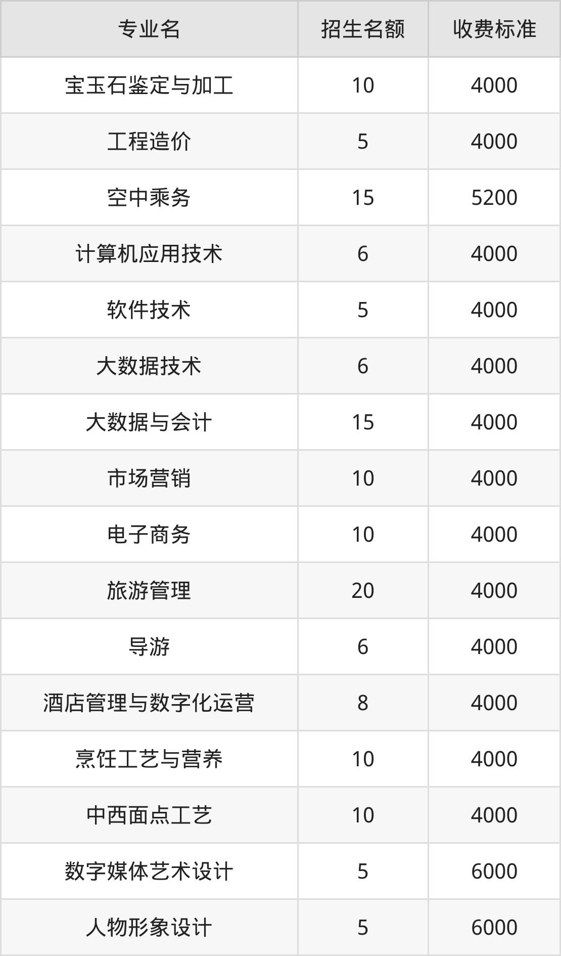 | 专科高职批 | 宝玉石鉴定与加工 | 10 |