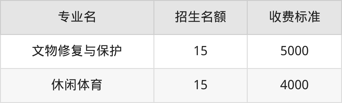 | 专科高职批 | 休闲体育 | 15 |
