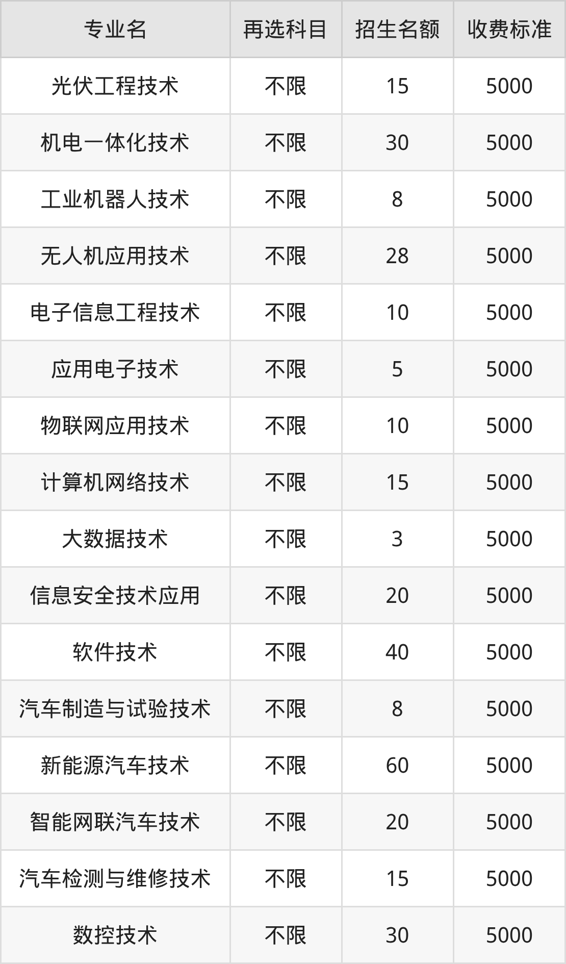 12.汽车制造与试验技术:学费是5000元