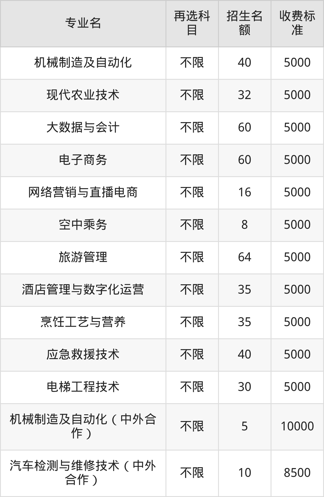 上饶职业技术学院在历史组高职专科批招生的各个专业,每年的学费是5000元-10000元。招生人数最多的专业是旅游管理,2025年招64人,学费是5000元。