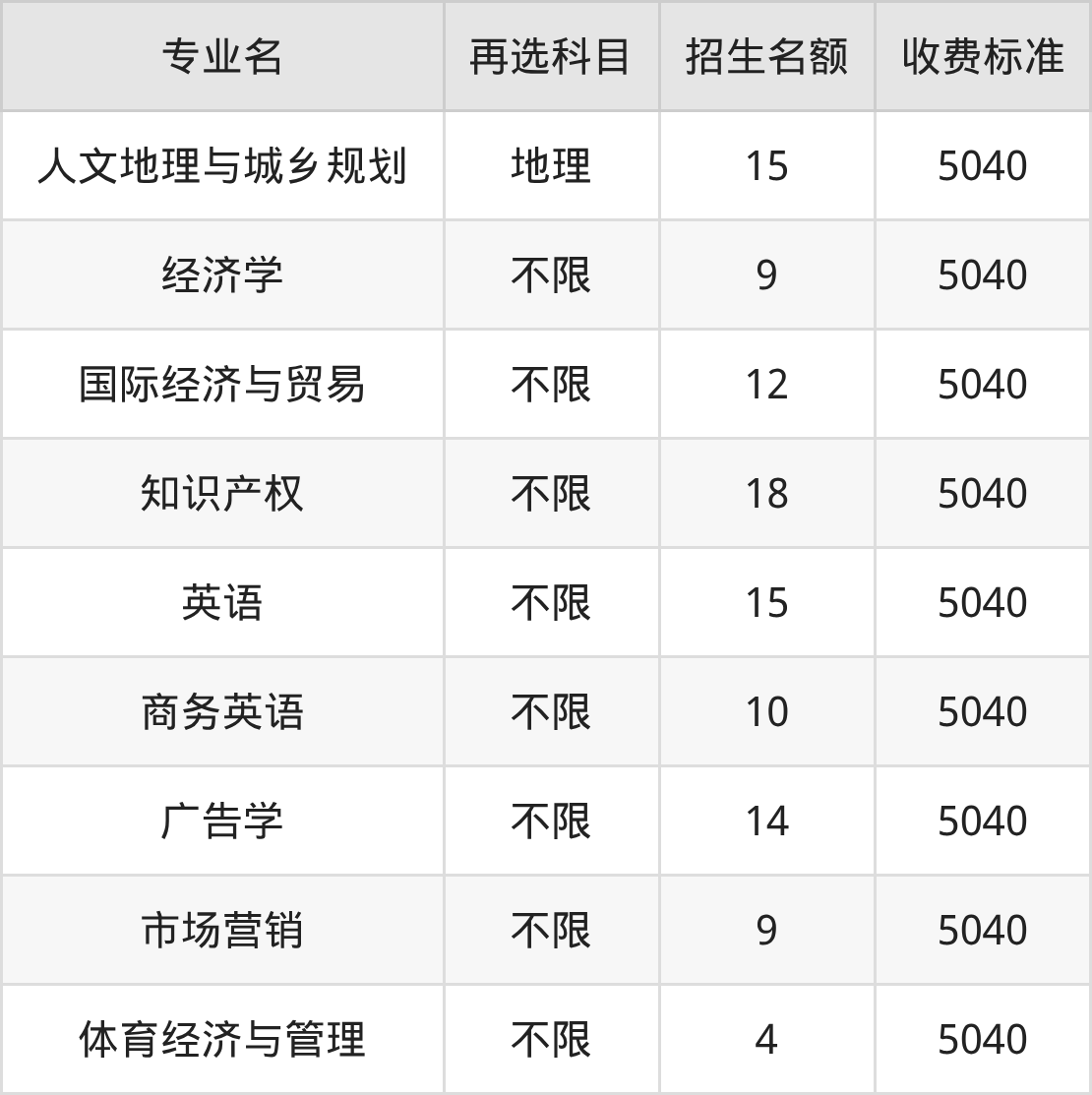 29.体育经济与管理:学费是5040元