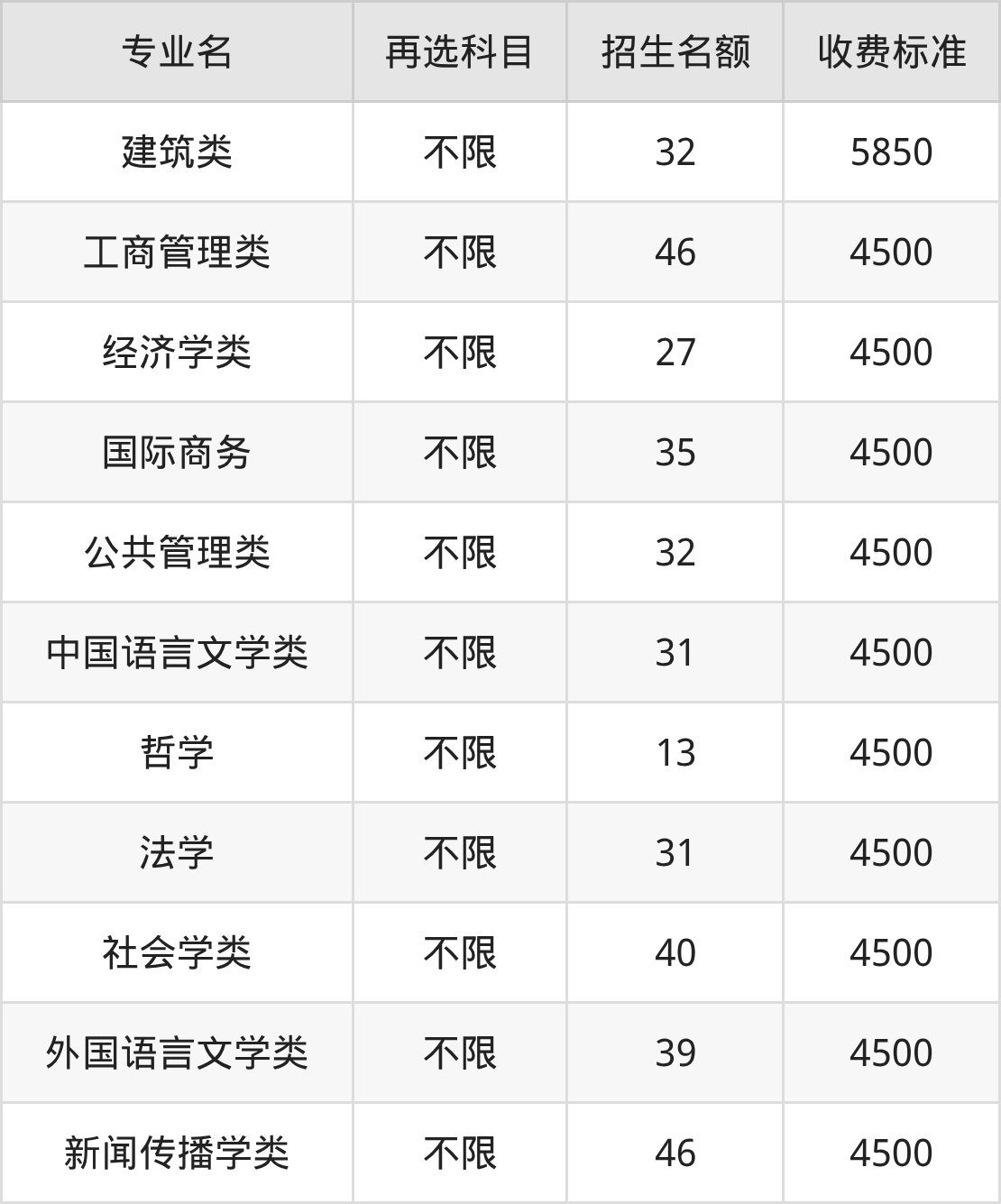 36.管理科学与工程类:学费是4500元