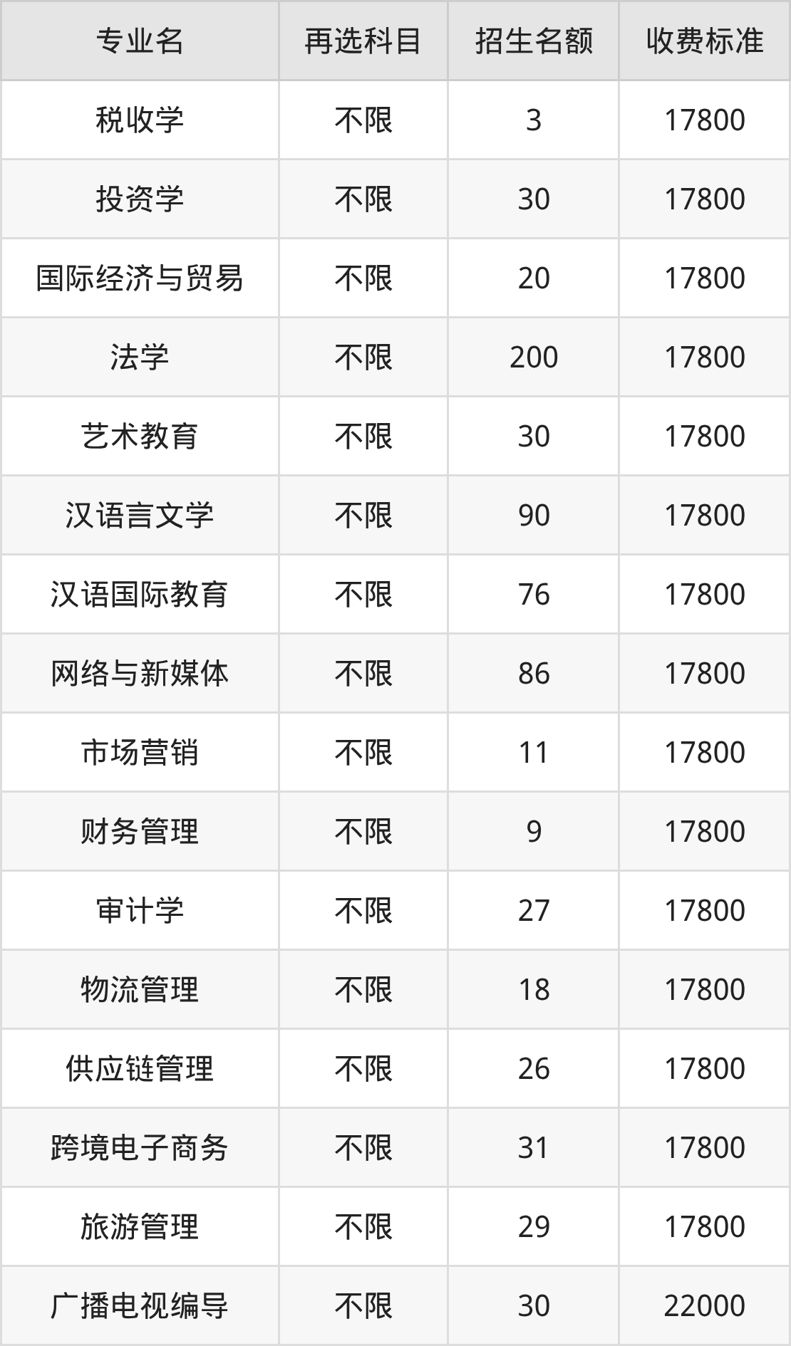 广西民族大学相思湖学院在历史组本科批招生的各个专业,每年的学费是17500元-22000元。招生人数最多的专业是法学,2025年招200人,学费是17800元。