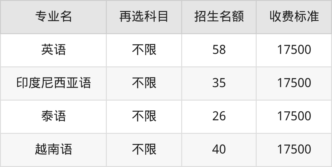 | 本科批 | 历史 | 印度尼西亚语 | 35 |