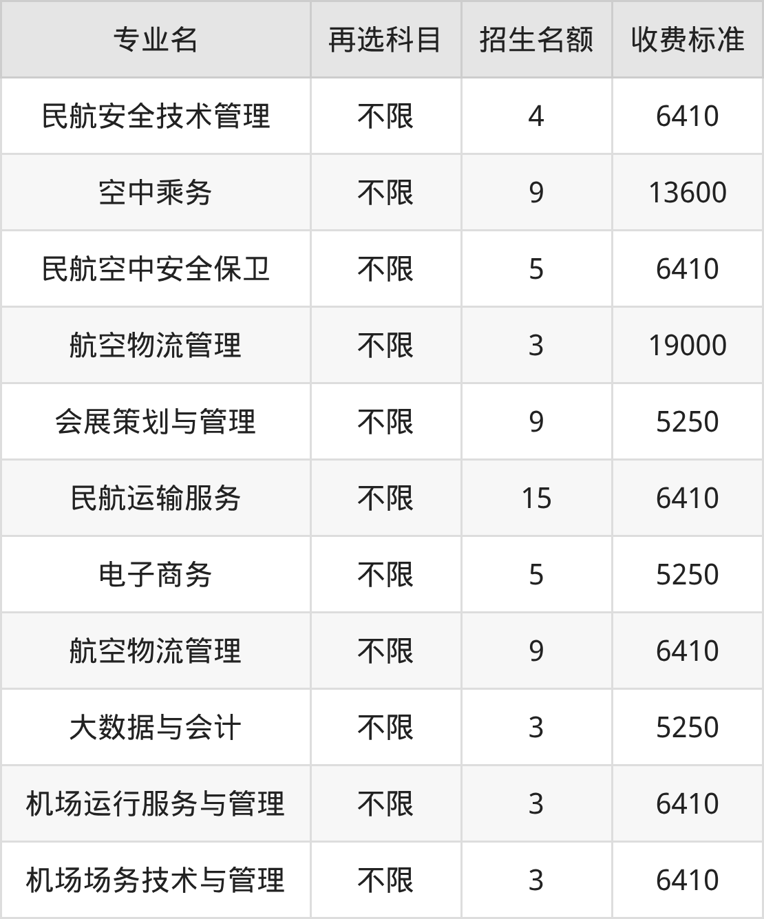 | 专科高职批 | 历史 | 航空物流管理 | 9 |