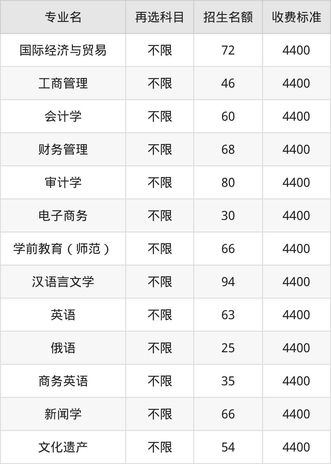 洛阳理工学院在历史组本科批招生的各个专业,每年的学费是4400元。招生人数最多的专业是汉语言文学,2025年招94人,学费是4400元。