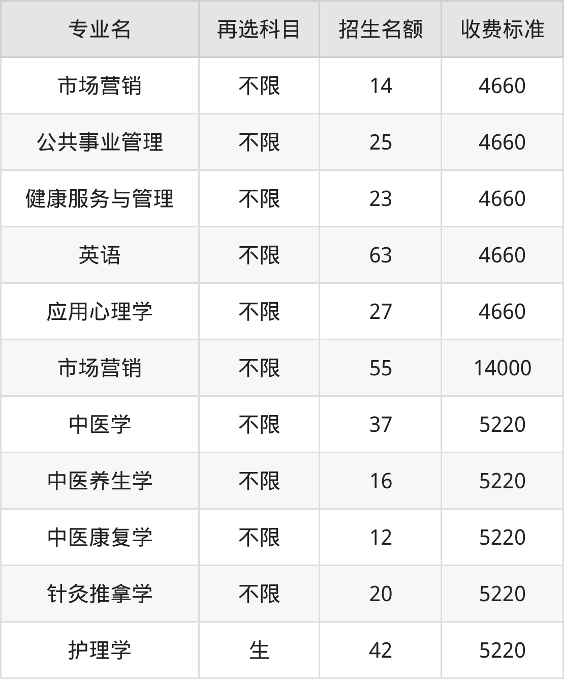 | 本科批 | 物理 | 健康服务与管理 | 20 |