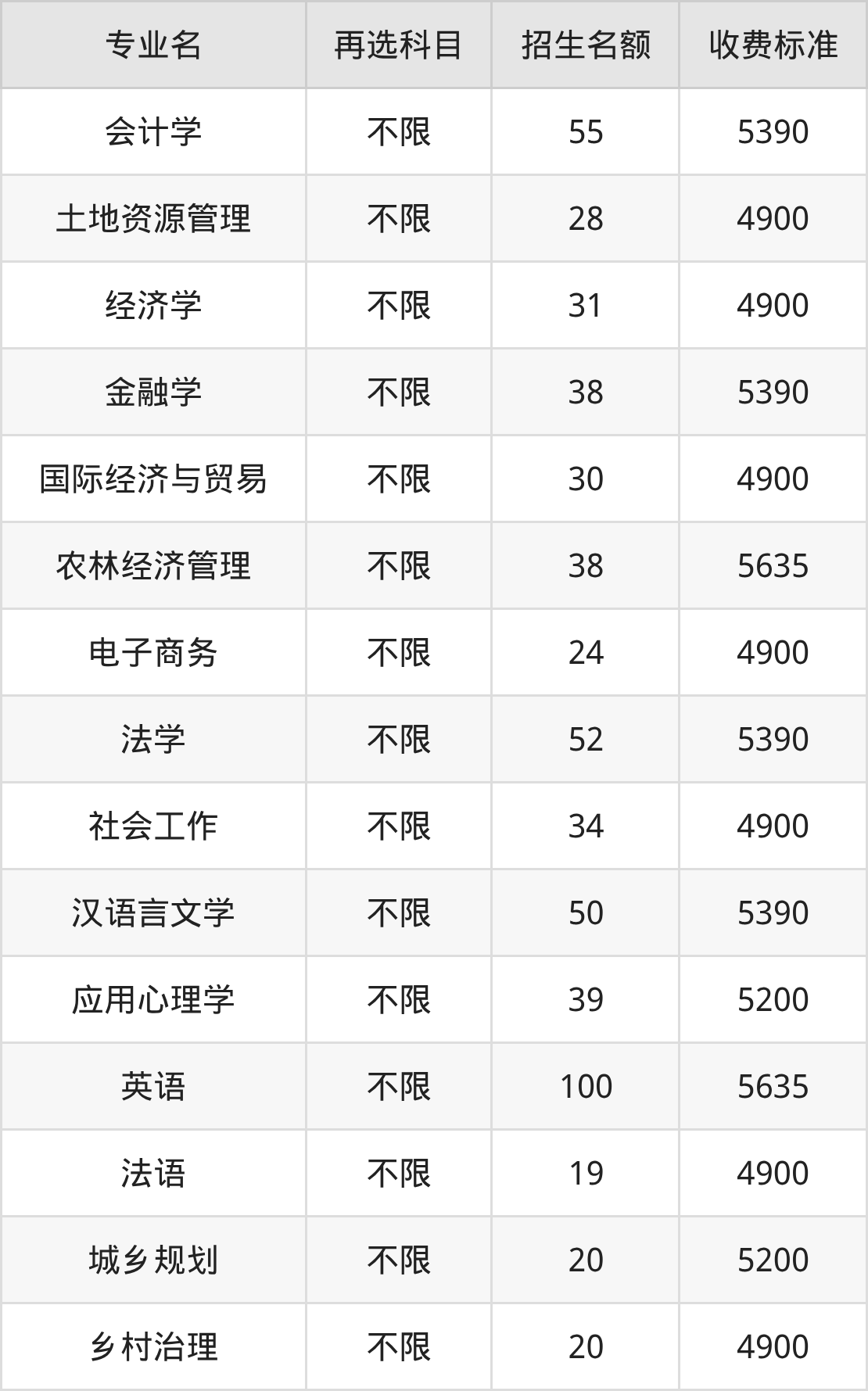 12.农林经济管理:学费是5635元