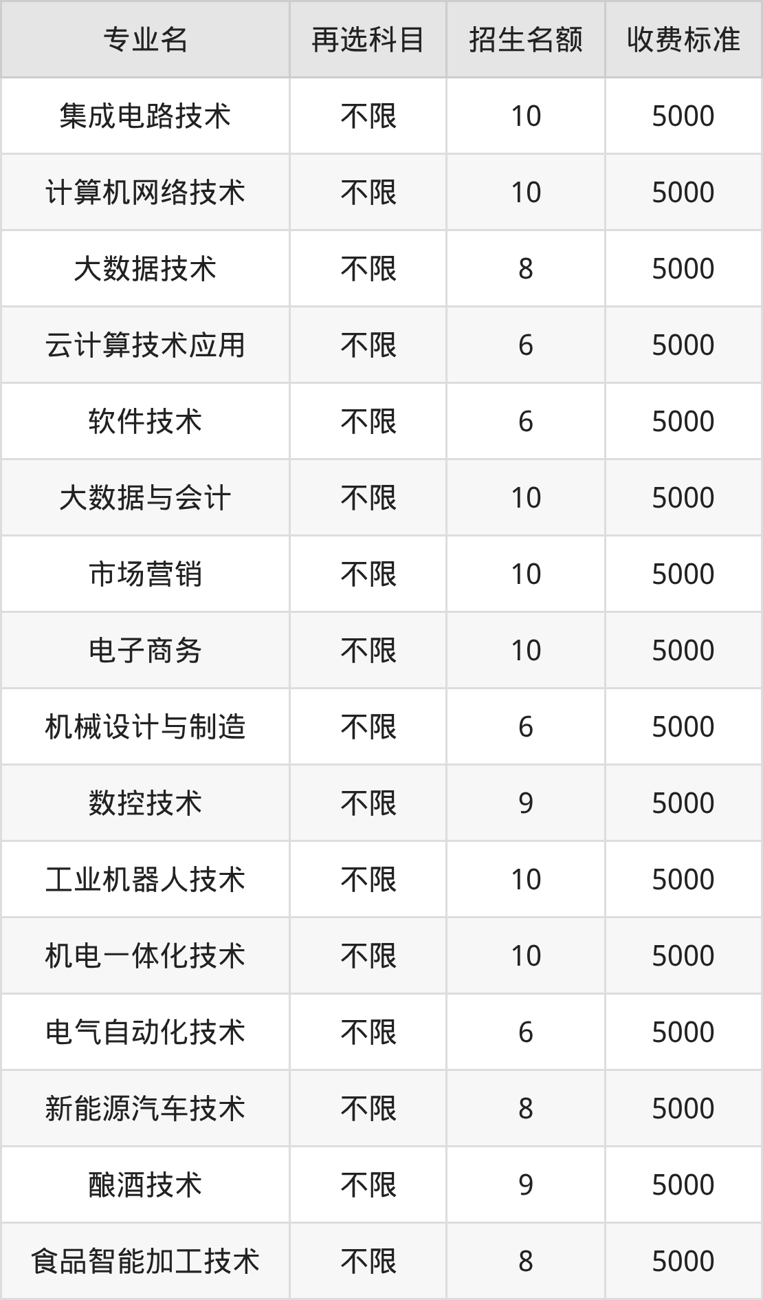 | 高职高专批 | 物理 | 酿酒技术 | 20 |