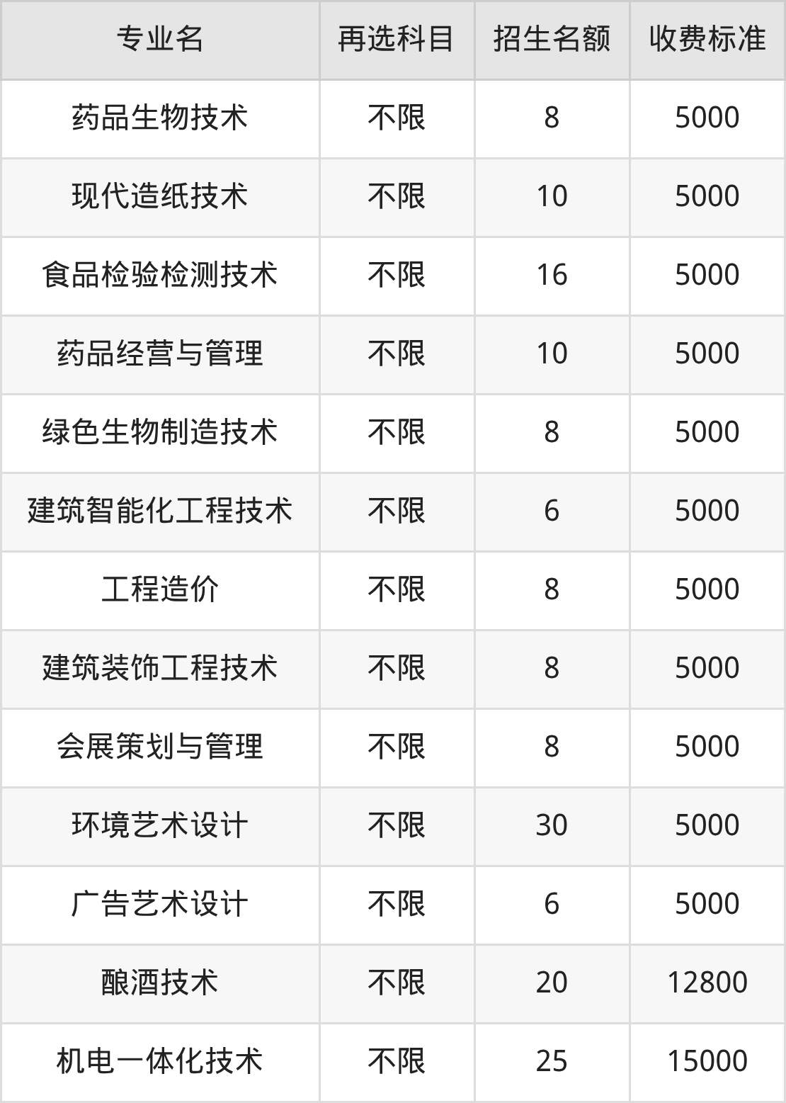 | 高职高专批 | 历史 | 现代造纸技术 | 10 |