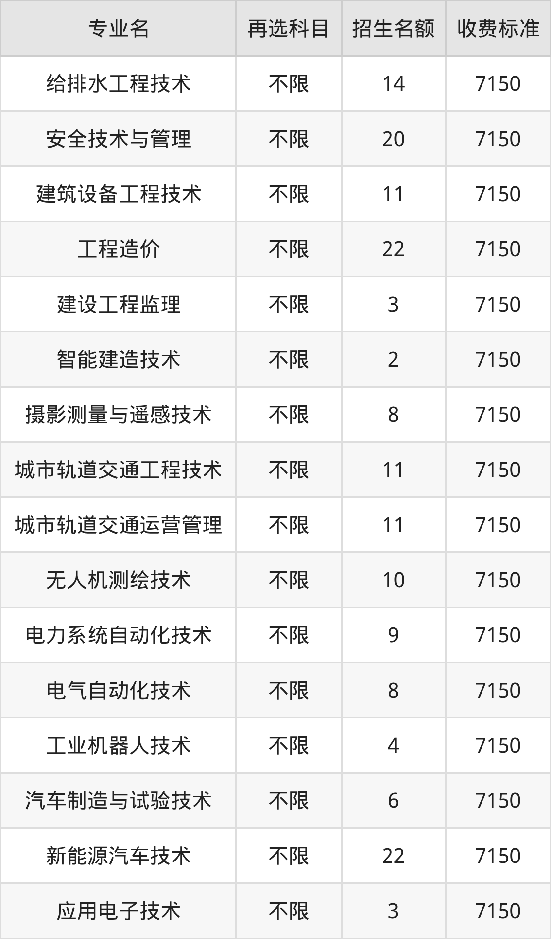 7.建筑工程技术:学费是7150元