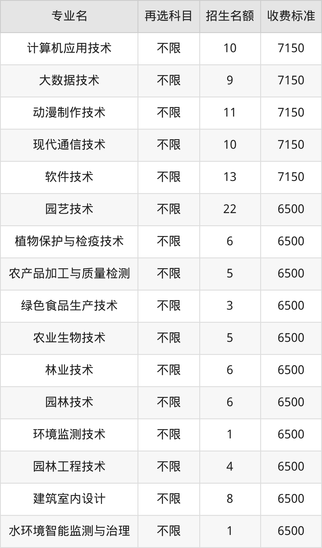 | 高职专科批 | 历史 | 计算机应用技术 | 10 |
