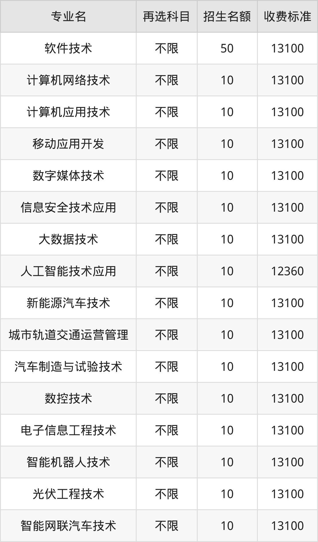 | 高职专科批 | 历史 | 计算机应用技术 | 10 |