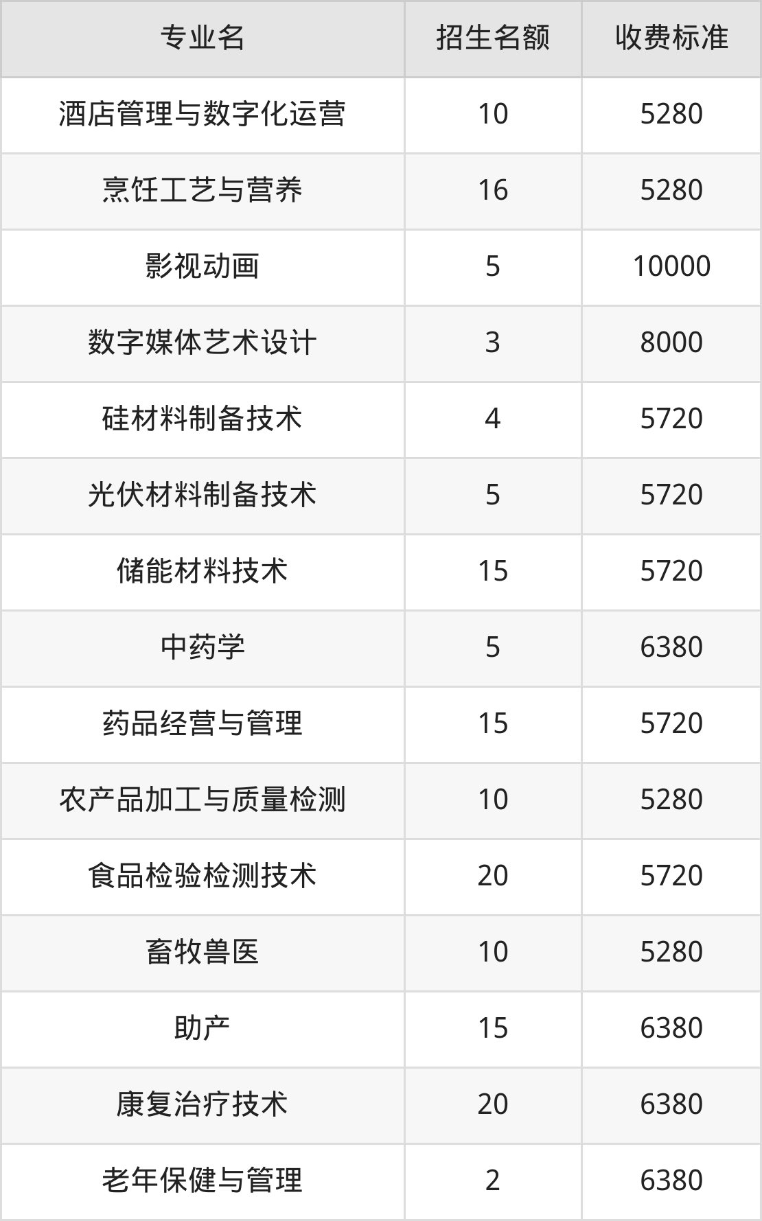 乐山职业技术学院在文科高职专科批招生的各个专业,每年的学费是5280元-10000元。招生人数最多的专业是大数据与会计,2024年招40人,学费是5280元。