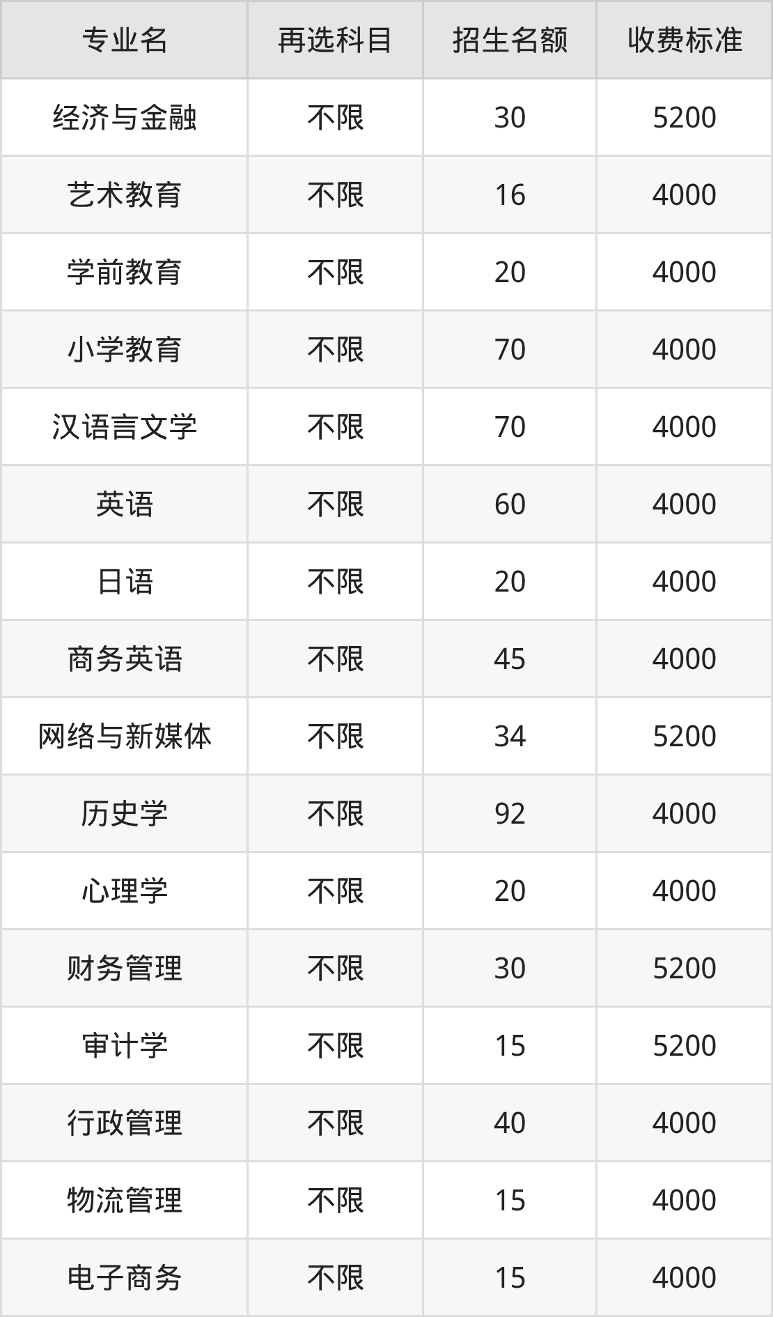 | 本科批 | 历史 | 艺术教育 | 16 |