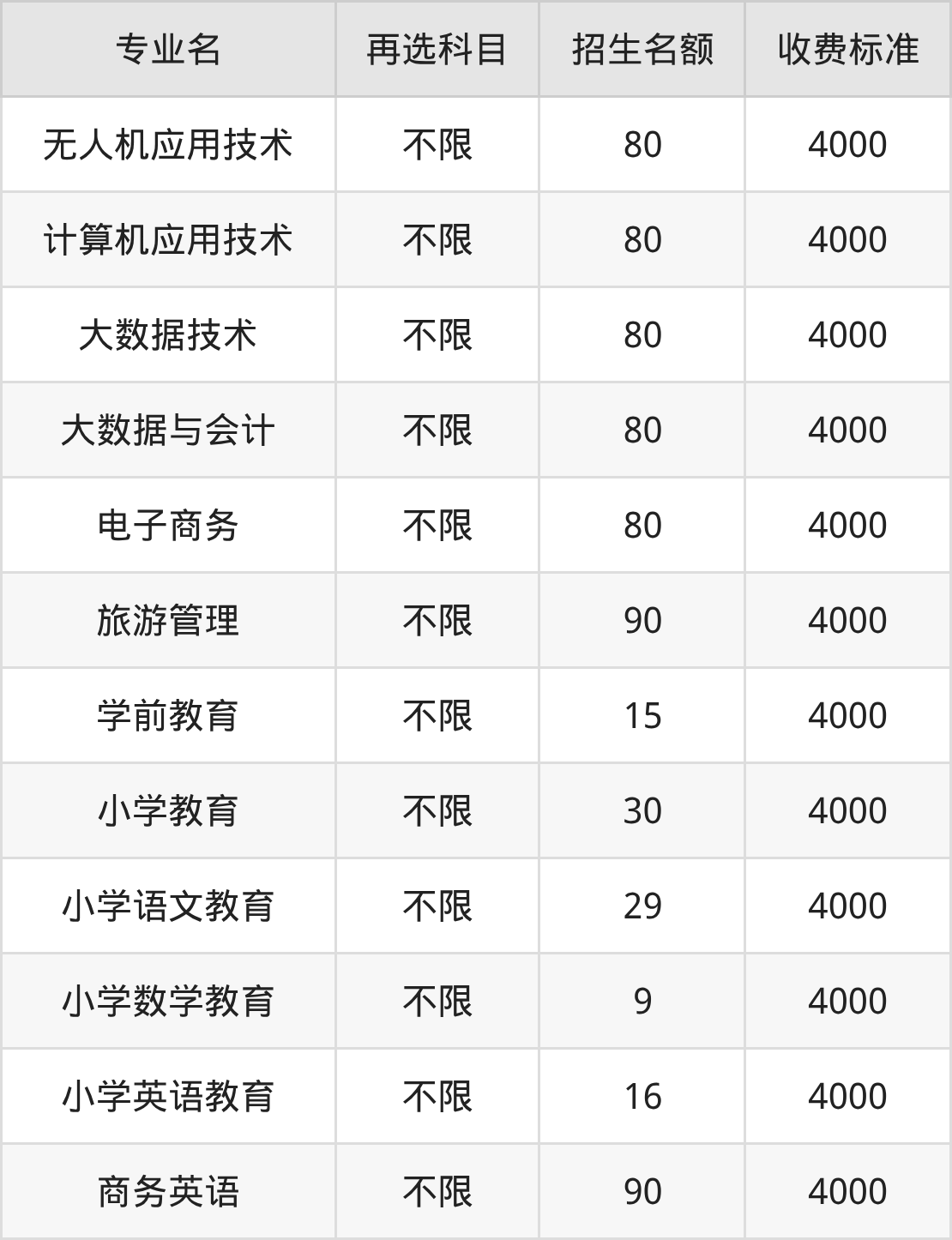 | 高职高专批 | 历史 | 计算机应用技术 | 80 |
