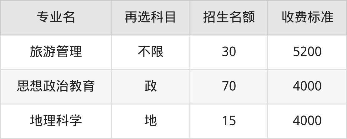 | 本科批 | 历史 | 地理科学 | 15 |