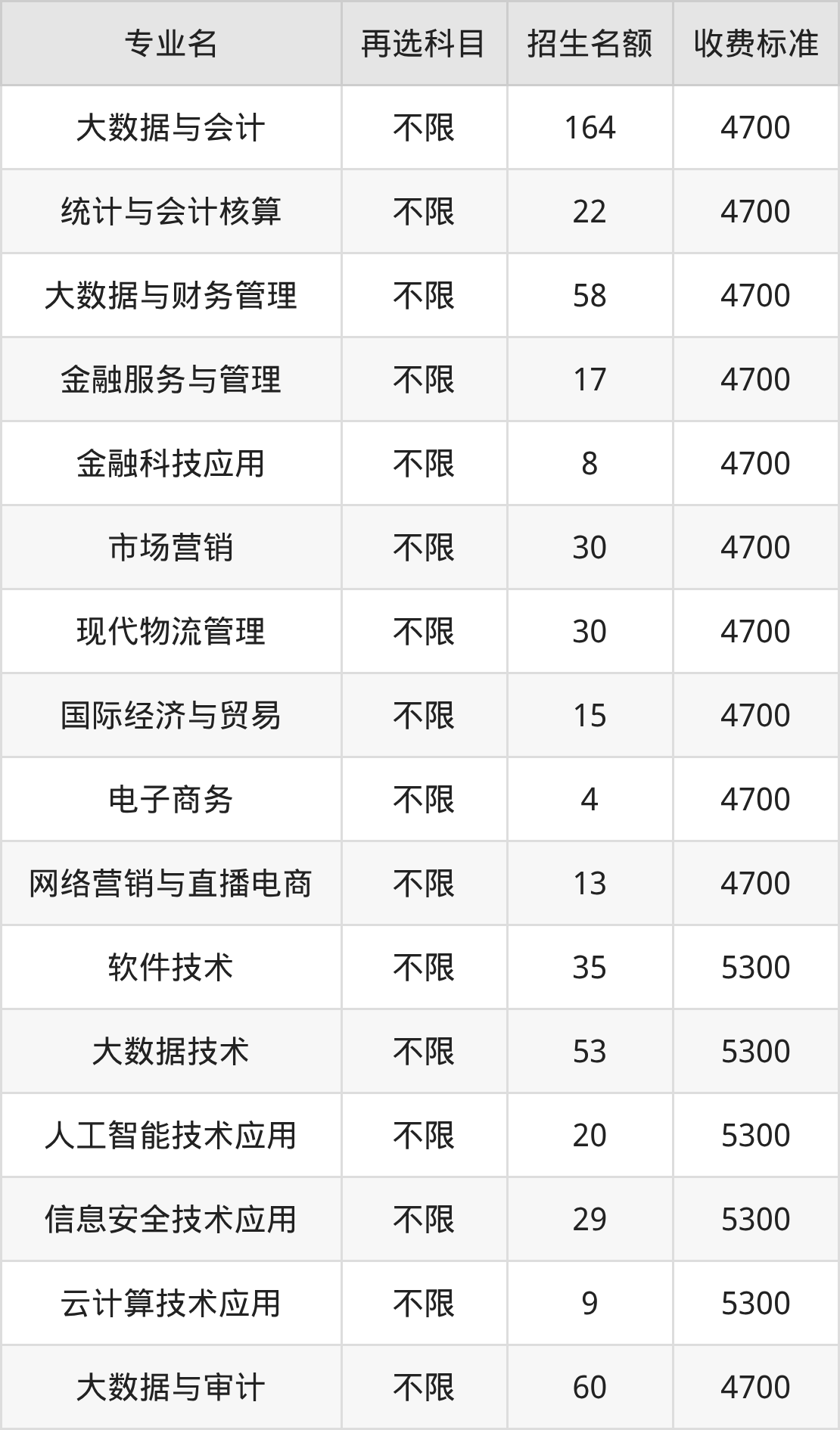 二、江苏财会职业学院各专业收费标准