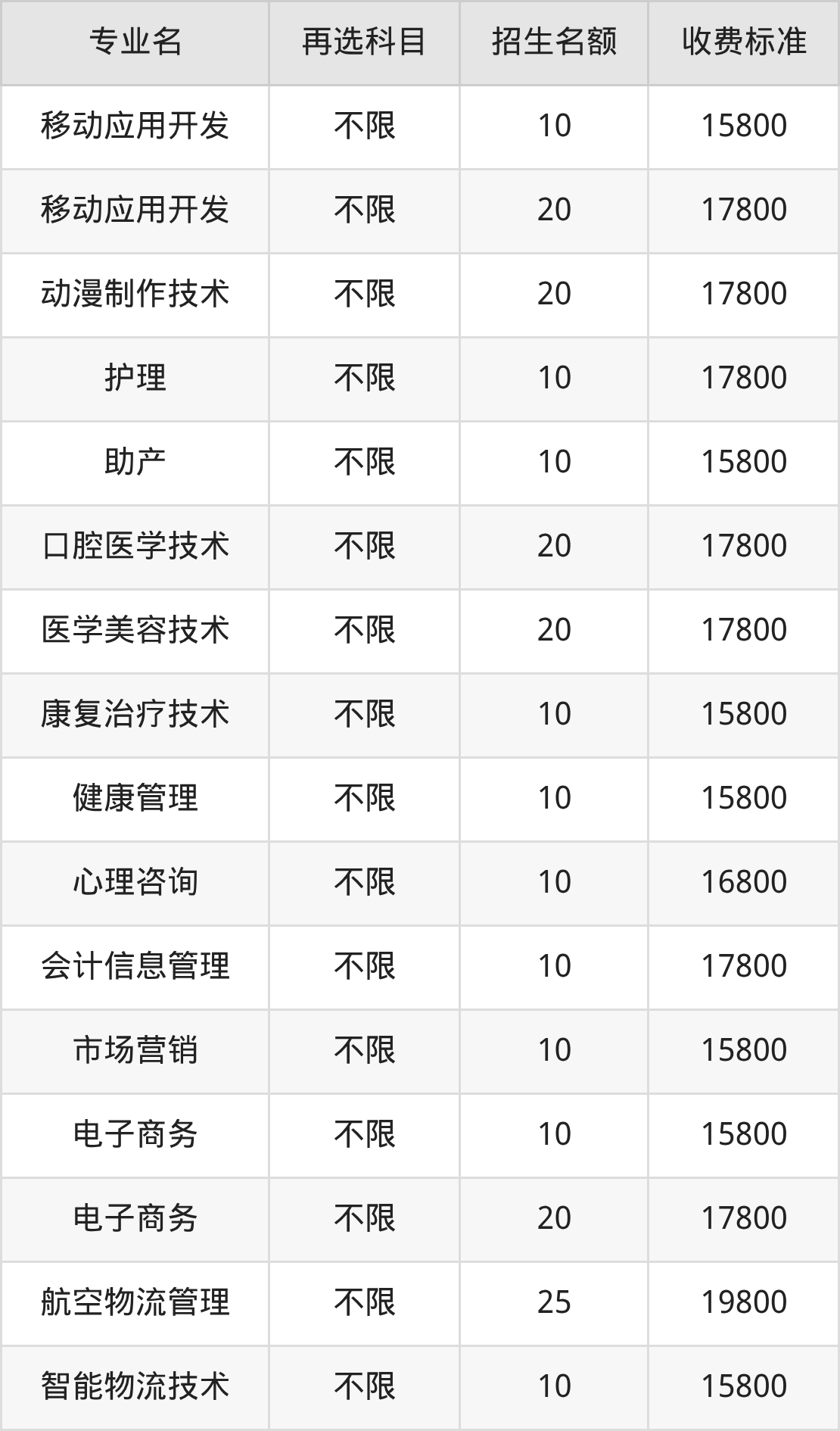 | 专科批 | 历史 | 移动应用开发 | 10 |