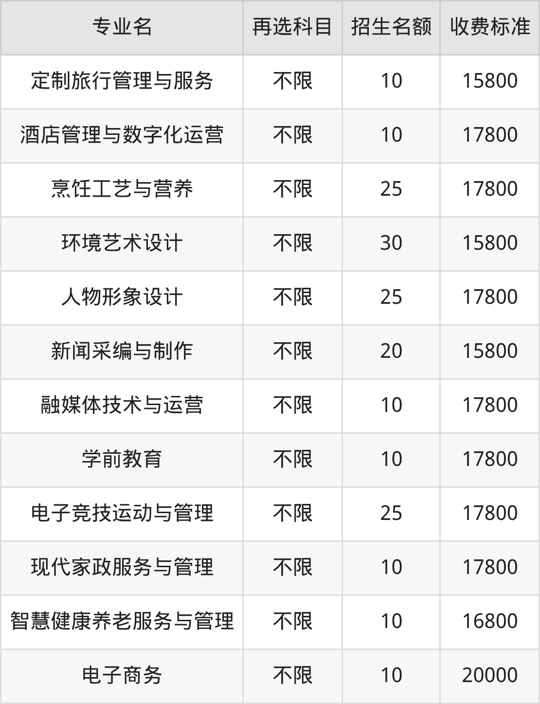 | 专科批 | 历史 | 定制旅行管理与服务 | 10 |