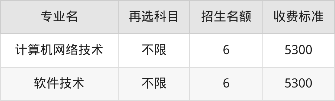 | 专科批 | 历史 | 计算机网络技术 | 6 |