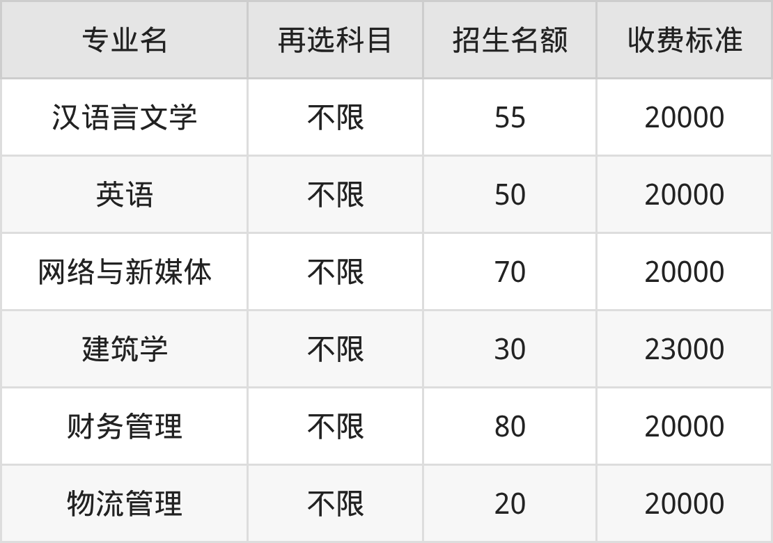 | 本科批 | 历史 | 物流管理 | 20 |