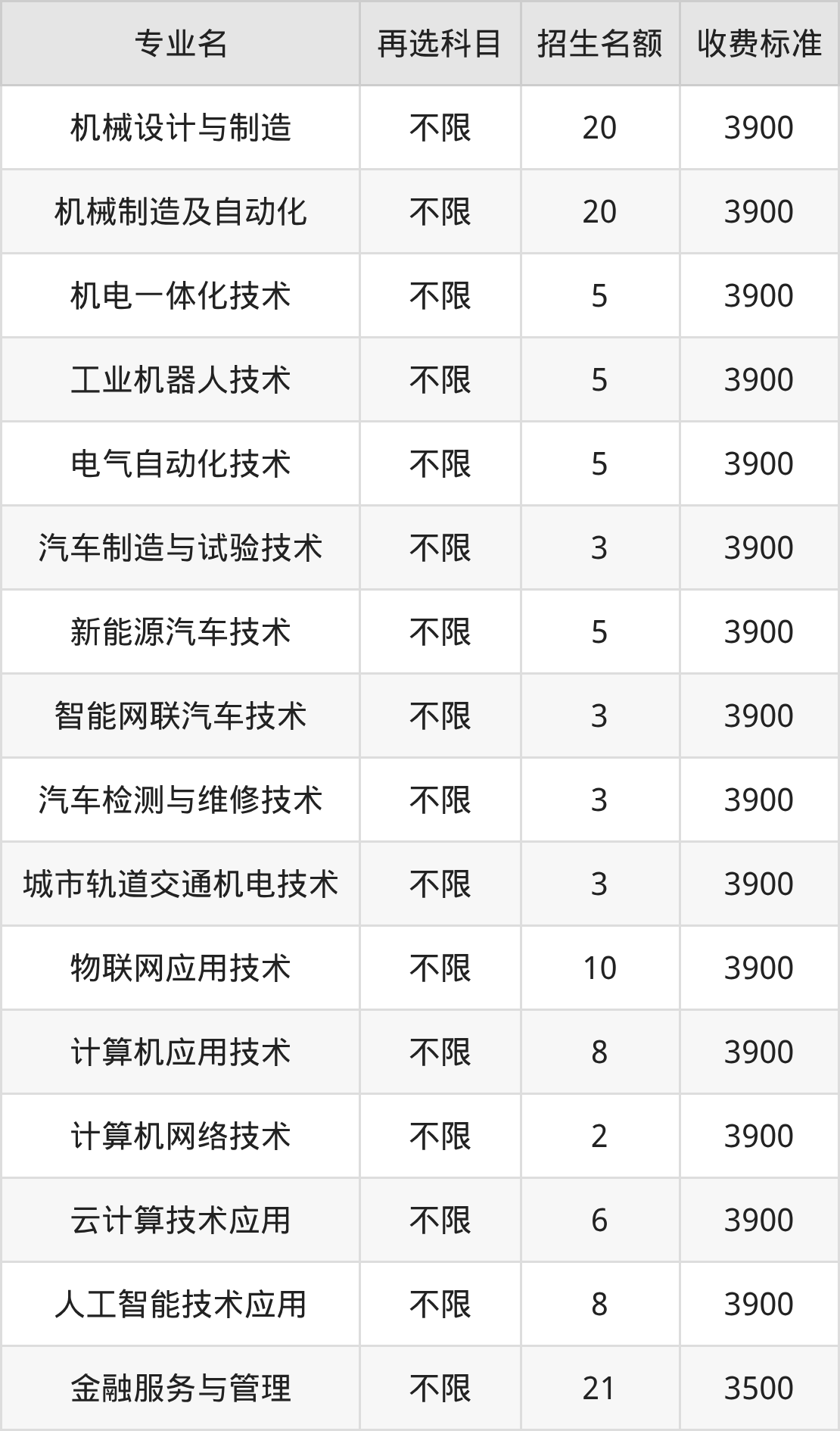 | 高职专科批 | 物理 | 机电一体化技术 | 20 |