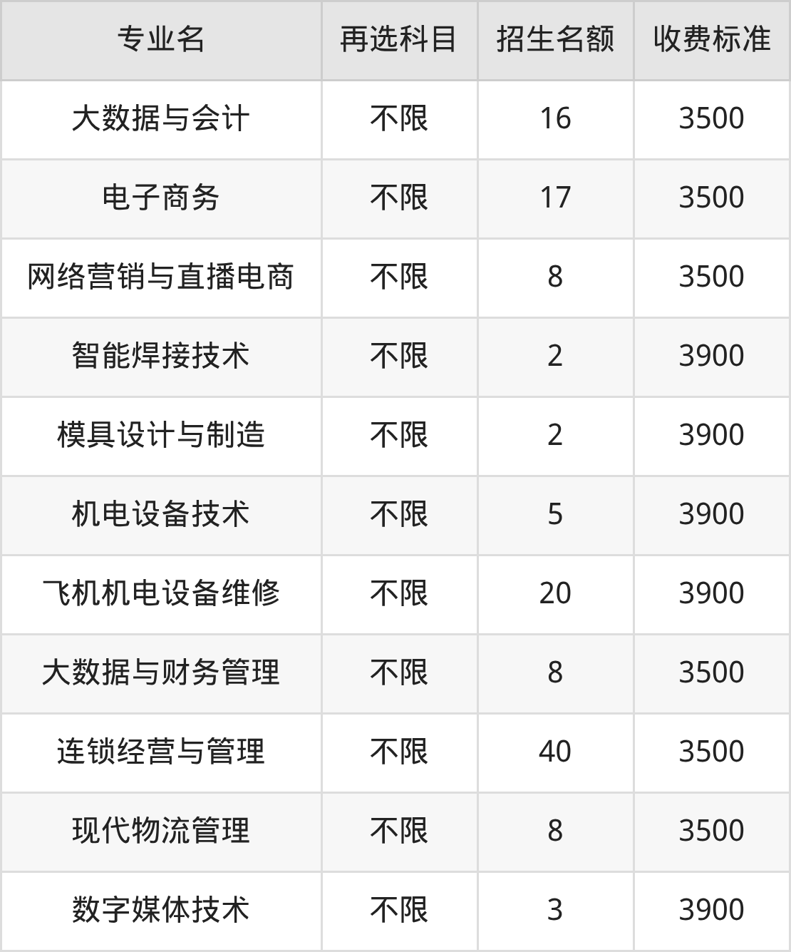 | 高职专科批 | 历史 | 飞机机电设备维修 | 20 |