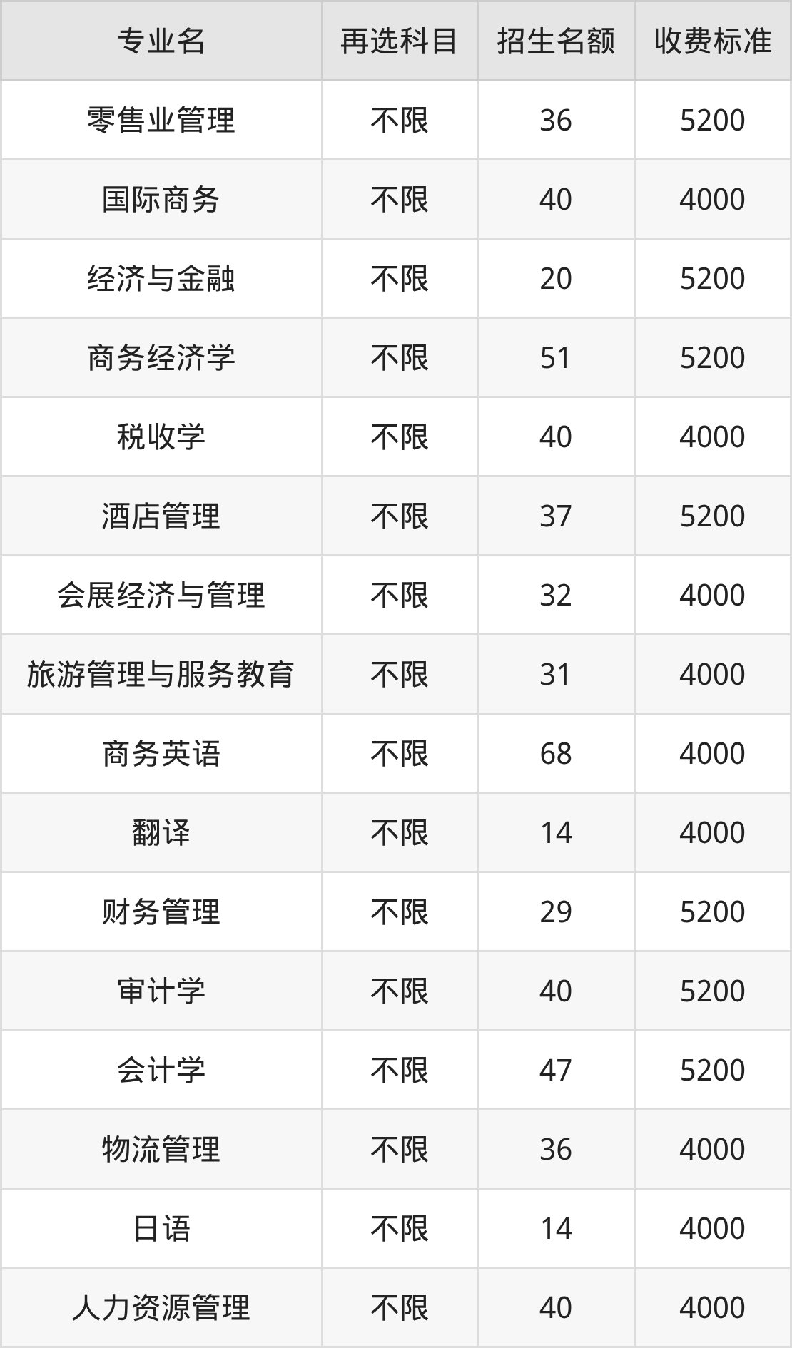 | 本科批 | 历史 | 人力资源管理 | 40 |