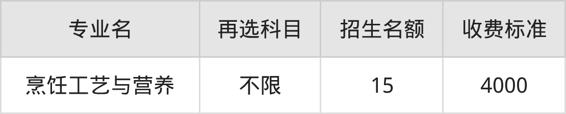 | 高职高专批 | 历史 | 烹饪工艺与营养 | 15 |