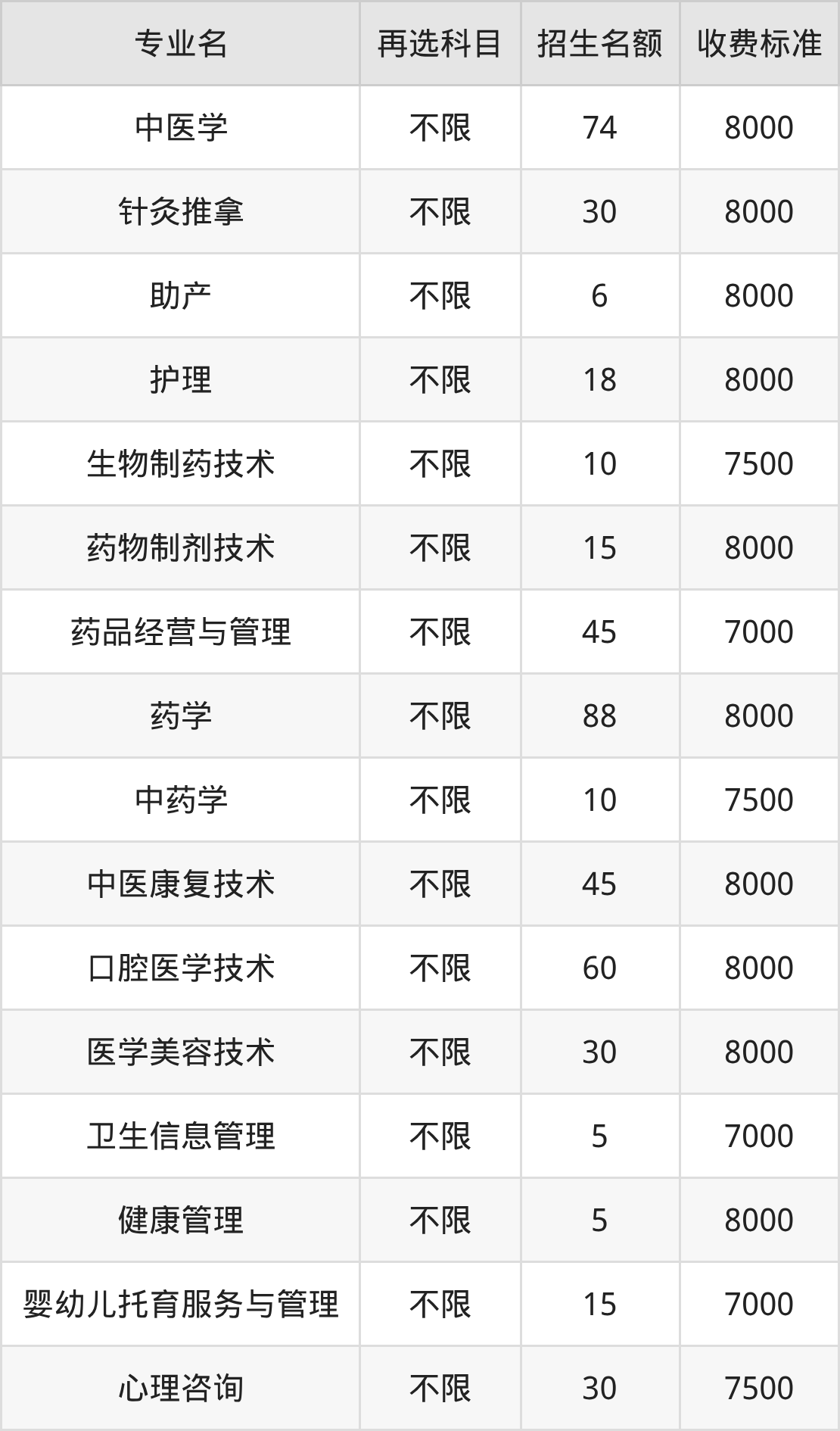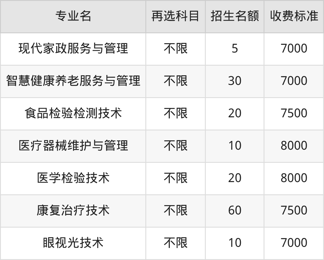 | 高职高专批 | 历史 | 健康管理 | 5 |