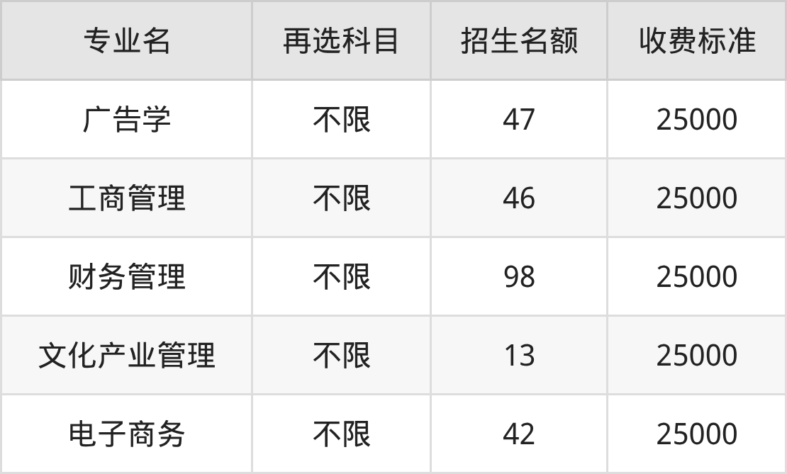 | 本科批 | 物理 | 工程管理 | 25 |