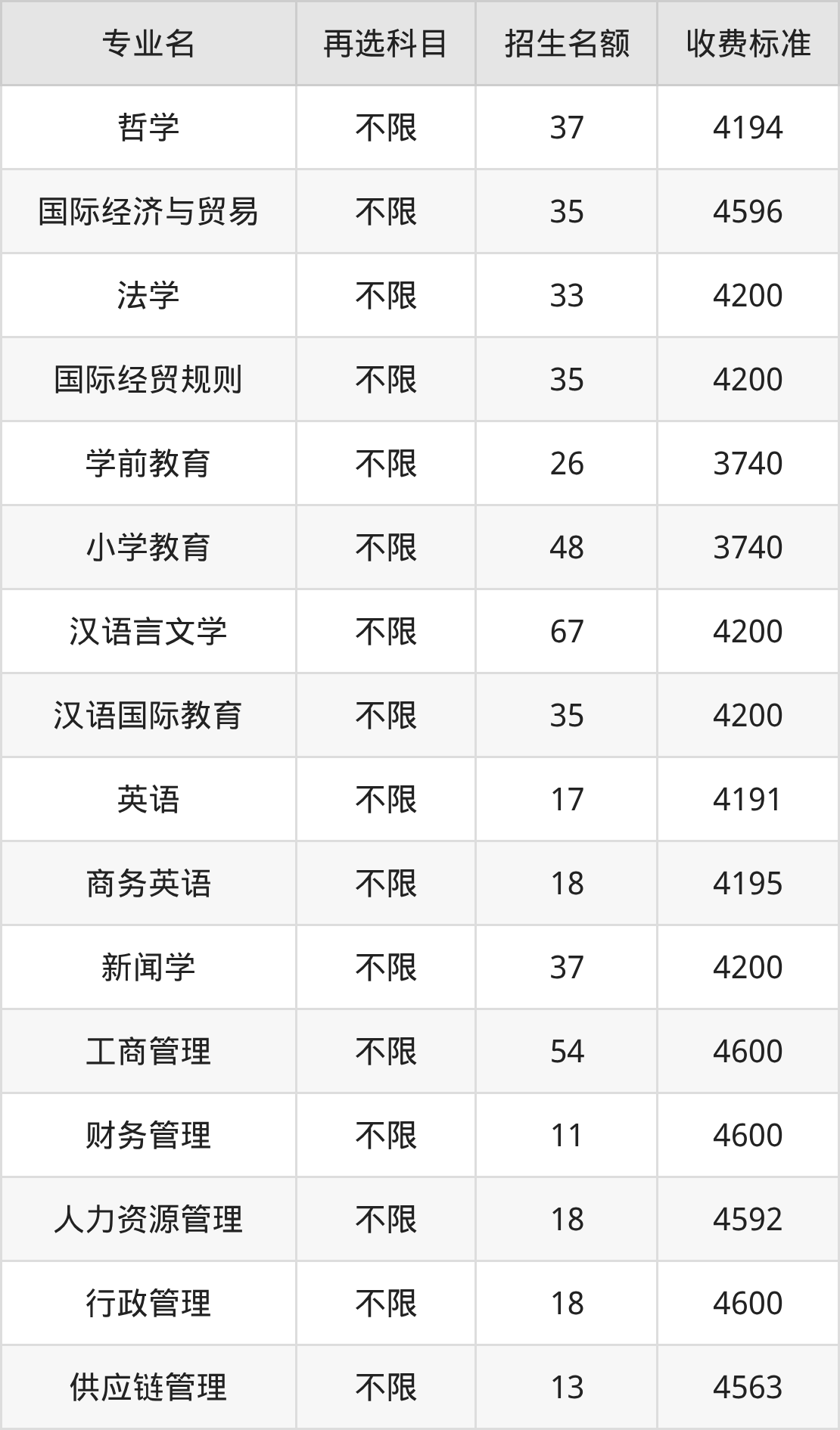 3.国际经济与贸易:学费是4596元