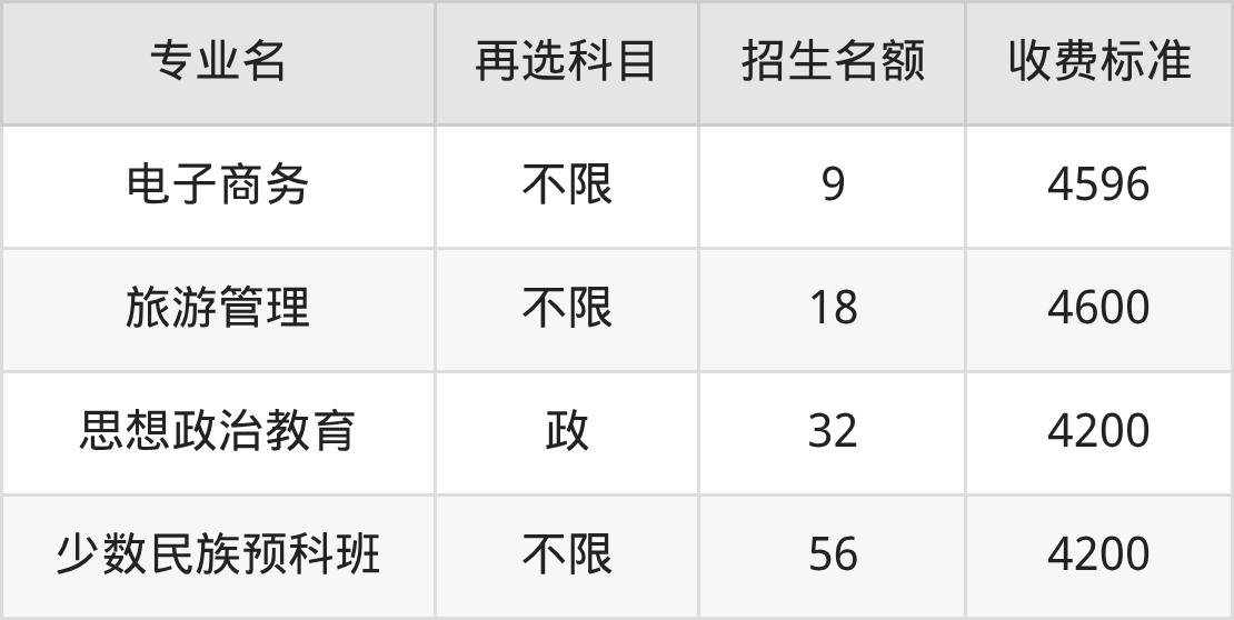 | 本科批 | 历史 | 旅游管理 | 18 |