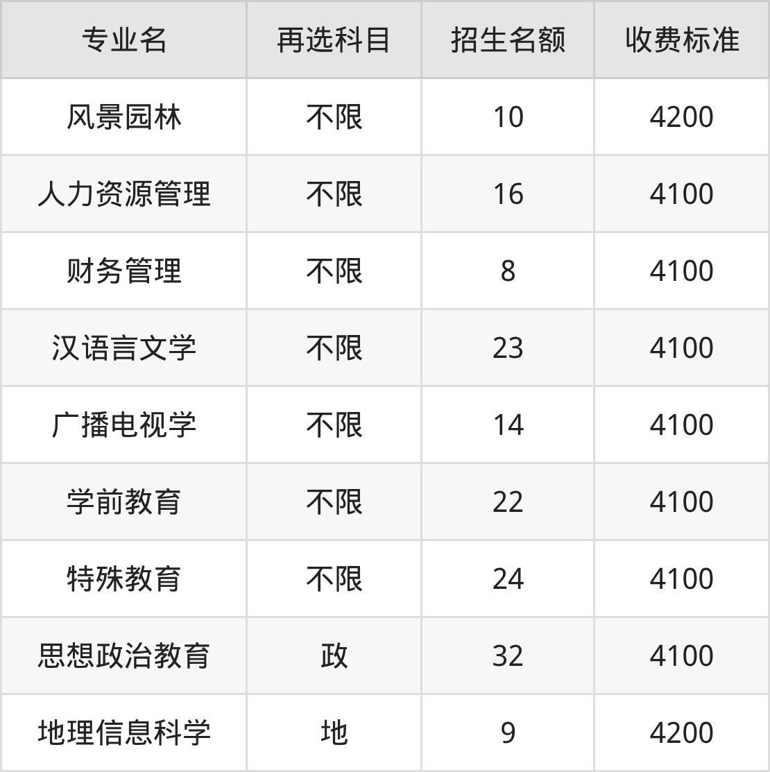 | 本科批 | 历史 | 风景园林 | 10 |