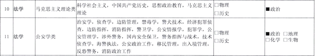 公安学类:如治安学、侦查学、公安管理学等。这是提前批报考公安院校文科方向(“文官”类)的必选科目,意向从警的考生必须选考政治。